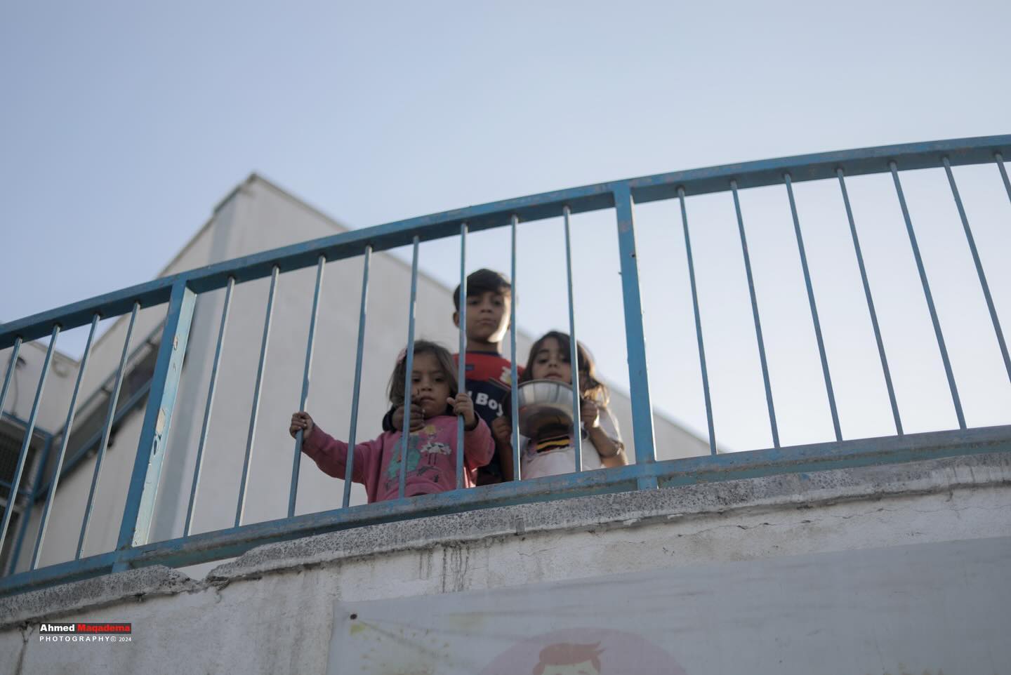 Little Palestinian girls wait to get food from a charity food kitchen in Gaza. By @ahmed.hamdan8