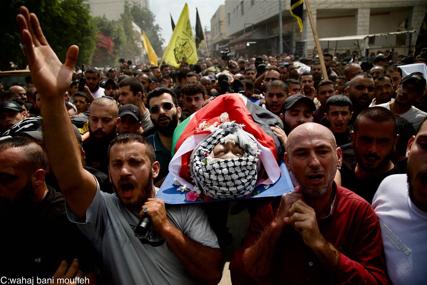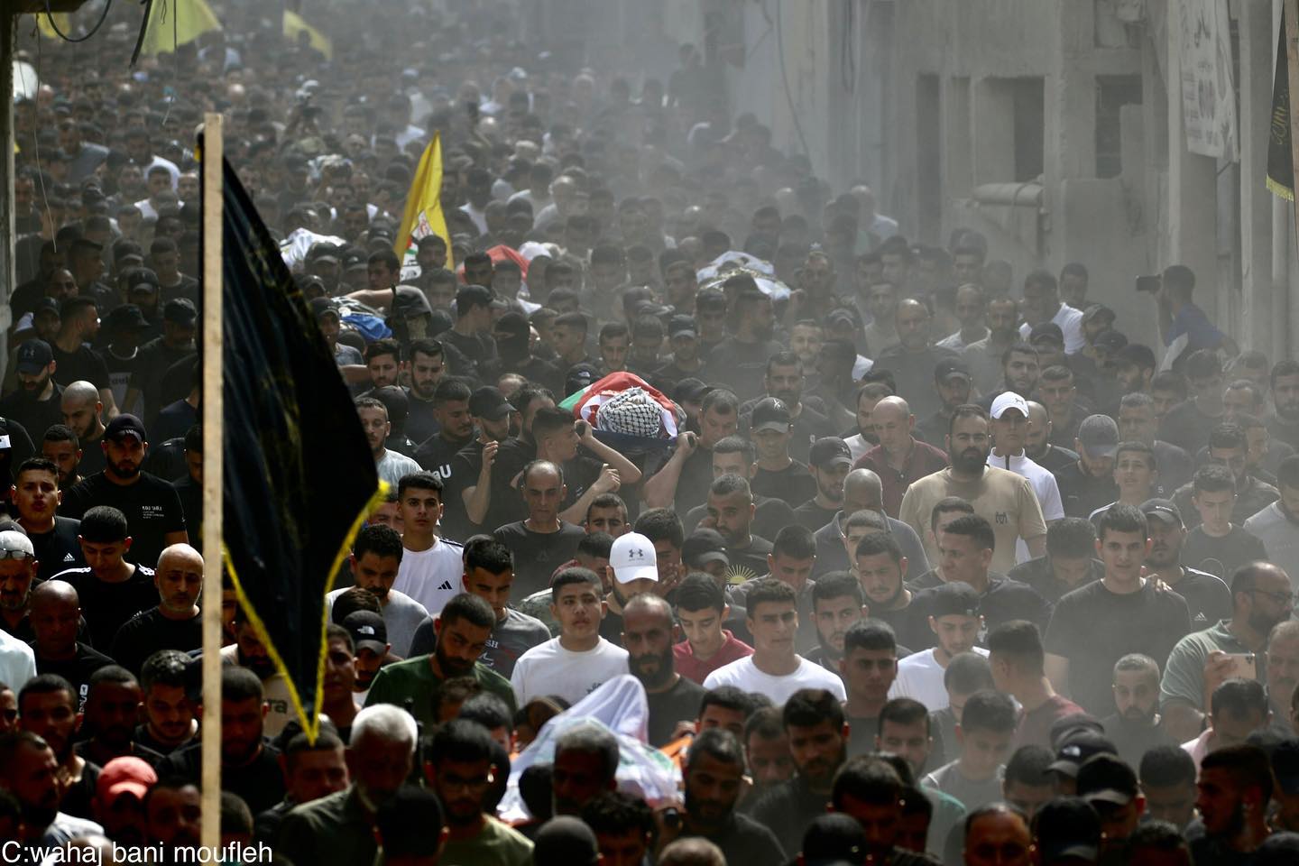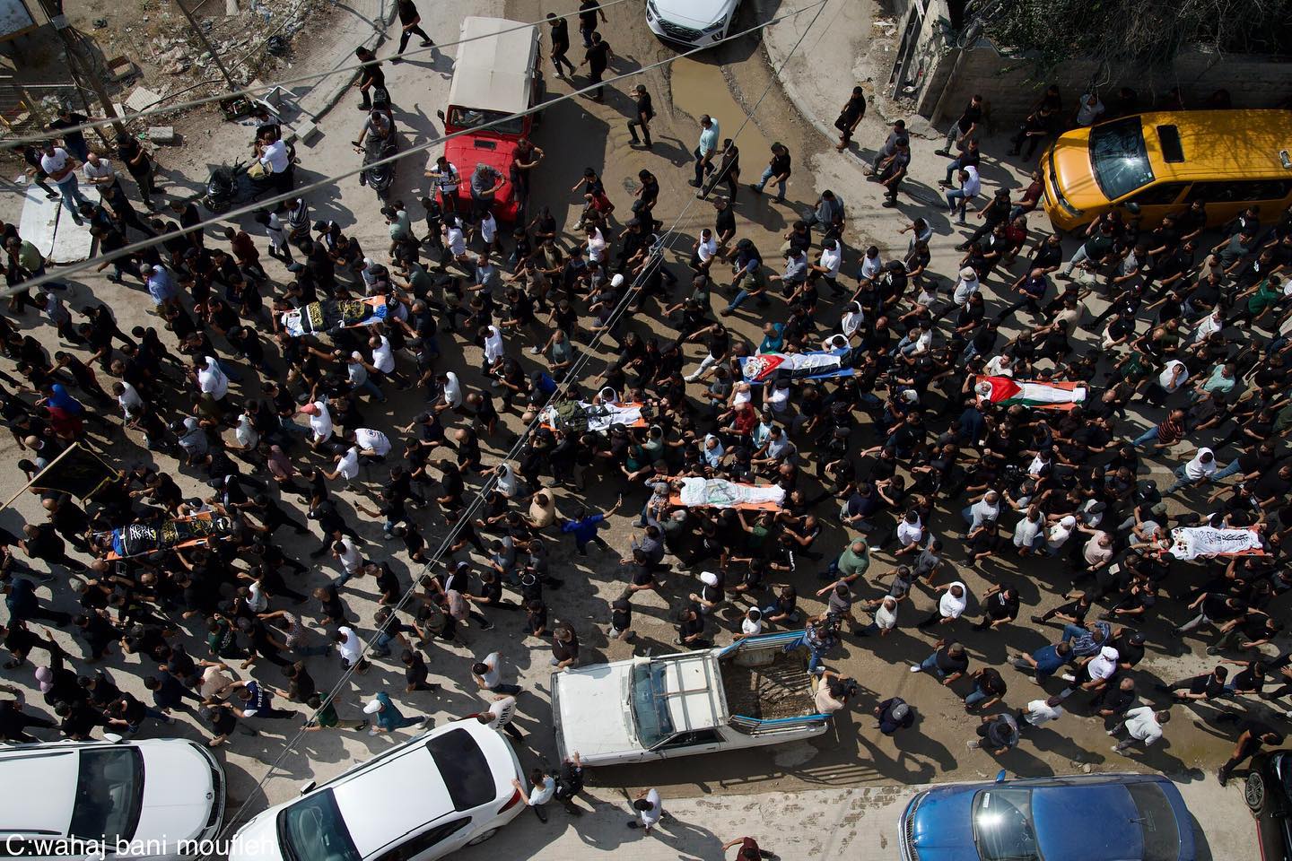 The funeral of Palestinians who were killed by the Israeli occupation forces in Jenin. 🎥 @hishamabushaqrah تشييع شهداء جنين