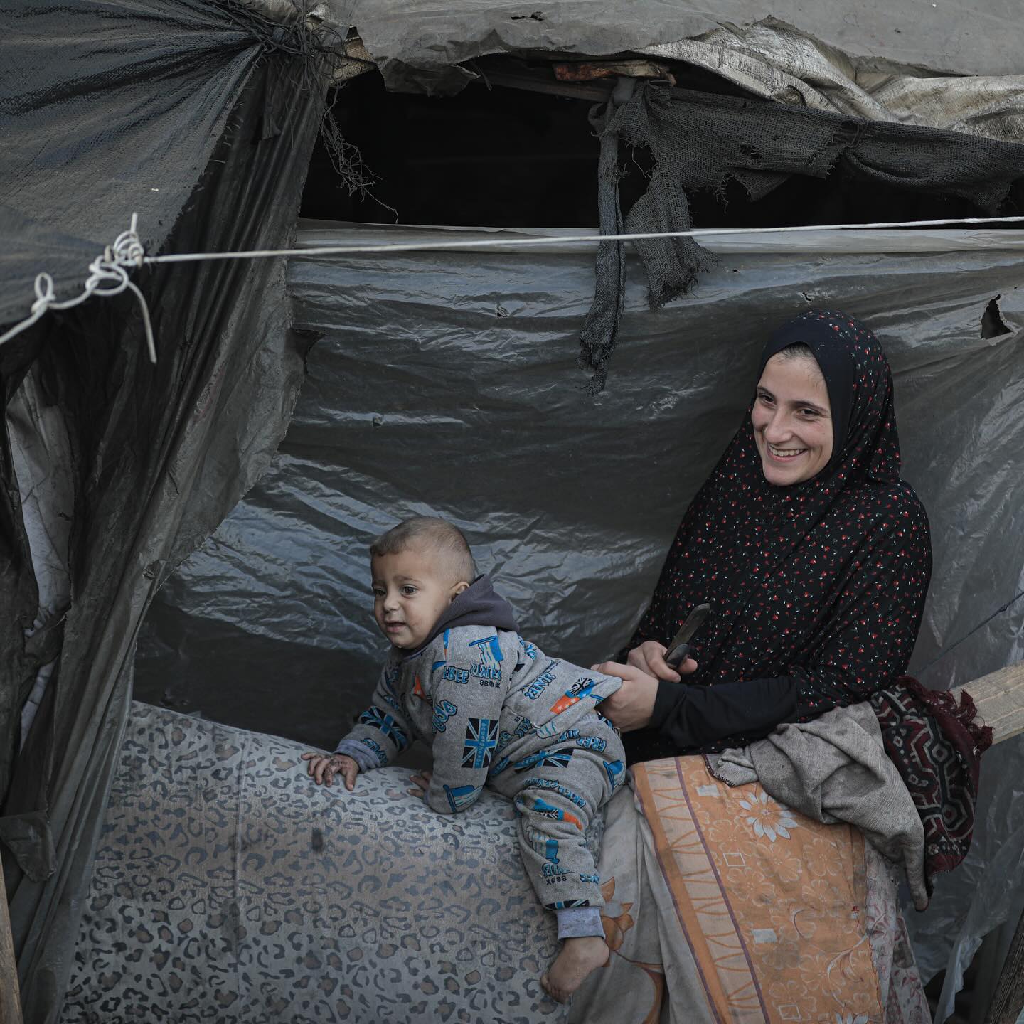 A smile from the womb of pain, death, bombing, destruction and displacement, a Palestinian woman from the northern Gaza Strip, forcibly displaced to the southern Gaza Strip after the occupation pursued them with bombing and displacement BY @mohamed.h.masri