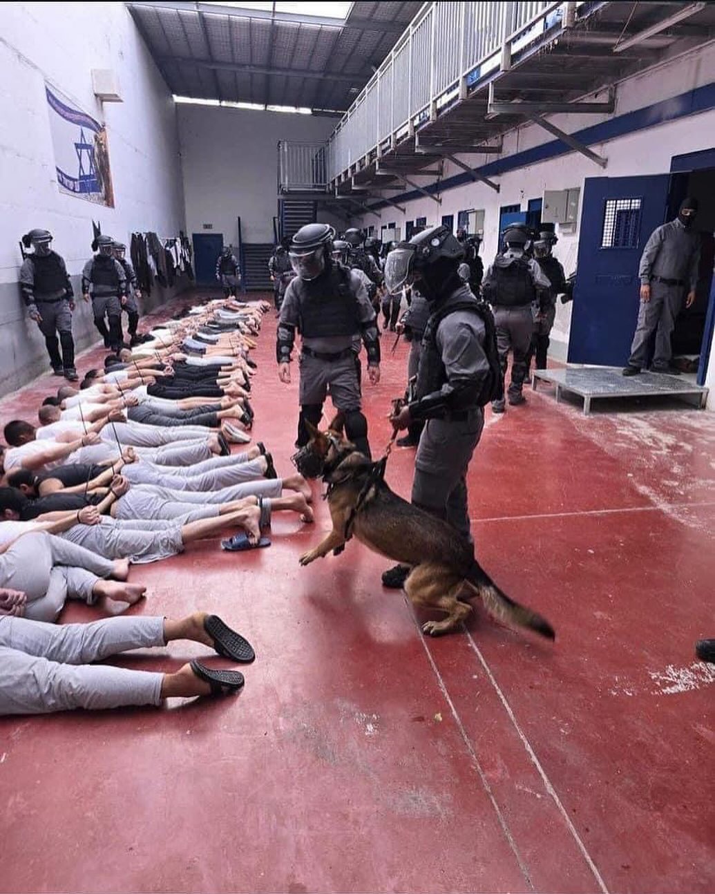 A video documents dozens of Palestinian detainees in Megdo Prison being subjected to abuses by the occupation jailers. فيديو يوثق تعرض عشرات الأسرى الفلسطينيين في سجن مجدو إلى انتهاكات على يد سجّاني الاحتلال.