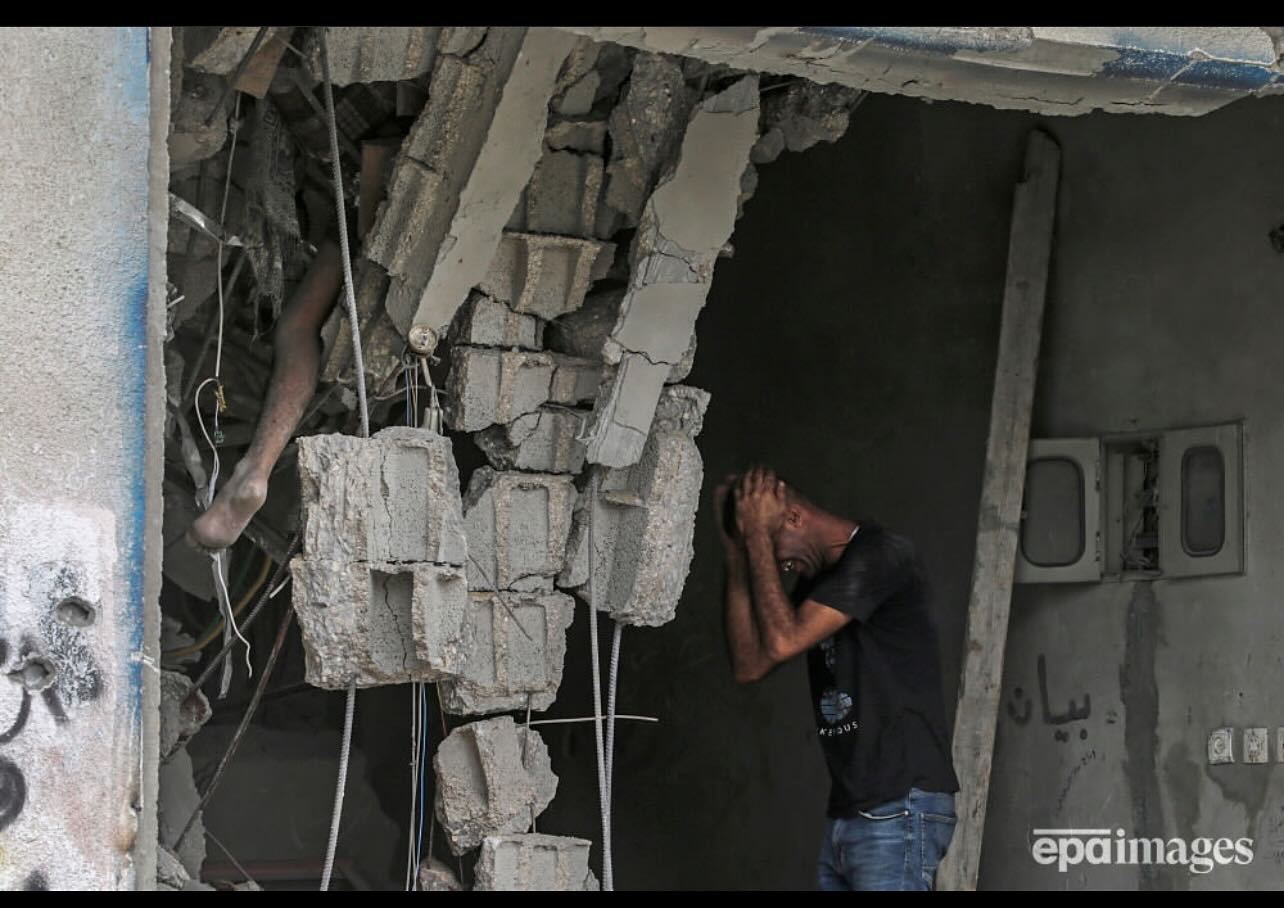 A Palestinian man reacts next to the body of a boy trapped among the rubble of a destroyed house following Israeli airstrikes in the al-Bureij refugee camp in the southern Gaza Strip, September 2024. According to the Palestinian Civil Defense, dozens of Palestinians were killed in the airstrikes. EPA/ Mohammed Saber #غزة #فلسطين🇵🇸 #غزة_تحت_القصف #gazaunderattack #palestine🇵🇸 #Gaza