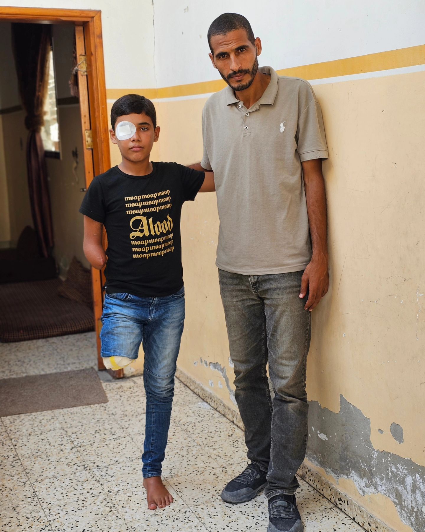 برفقة الطفل وحيد الغلبان فقد عينه وقدمه ويده خلال الحرب المستمرة على غزة