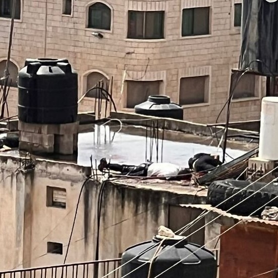 The bodies of three Palestinians, executed by the Israeli forces, are still on the roof of the home that was besieged by the occupation forces in Qabatia town, southern Jenin. By @raneen.jour جثامين شبان ارتقوا برصاص الاحتلال على سطح منزل محاصر في بلدة قباطية في جنين