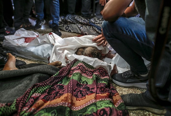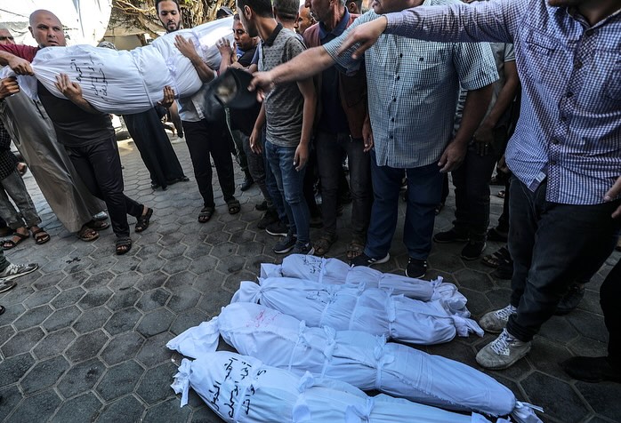 شاهد دفن جثامين ٨٨ شهيدًا في مقبرة جماعية بمدينة خانيونس