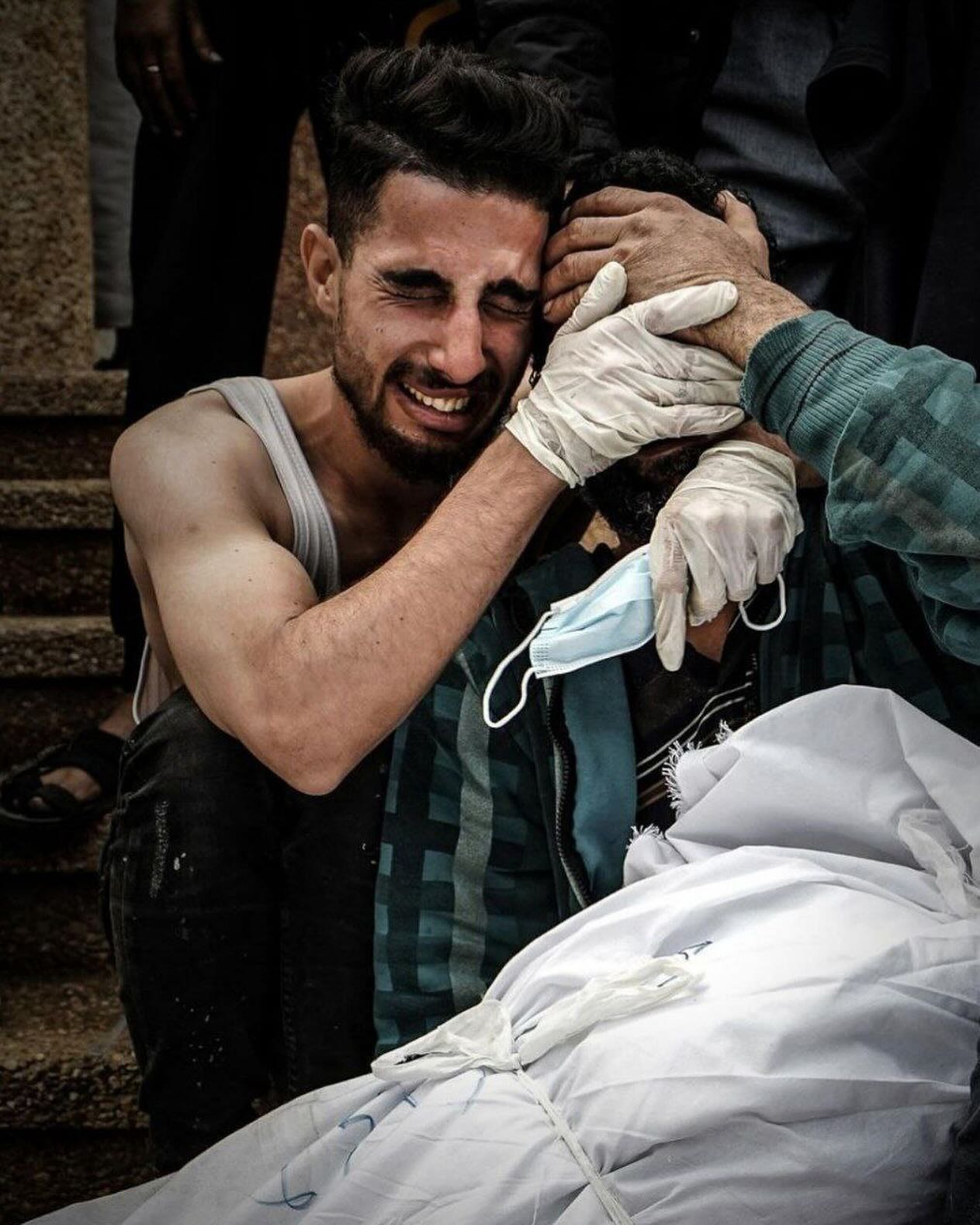 Palestinians lost their relatives in the Israeli air strike that targeted a school in Jabalia refugee camp, north of Gaza. By @fadi_alwhidi مواطنون فقدوا أقاربهم في قصف استهدف مدرسة الفلوجة في مخيم جباليا شمال القطاع
