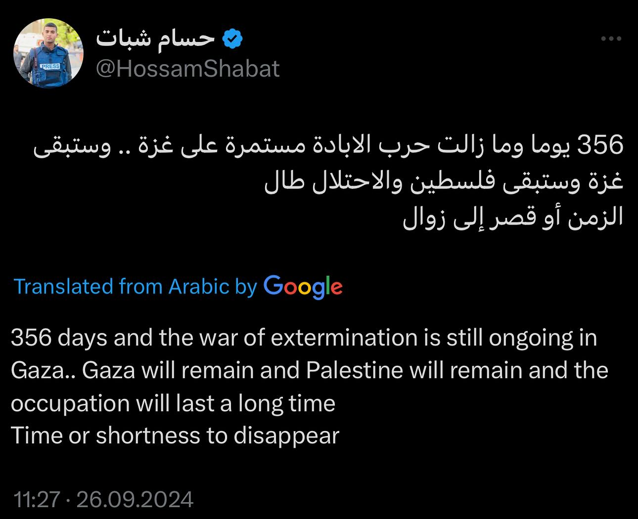 تفاجأت بهذه الكلمات أثناء تغطيتنا للمجزرة التي ارتكبتها قوات الاحتلال. سنظل نحمل هذه الأمانة ما حيينا، نحن عين أهلنا وصوتهم، وجعنا واحد، وأملنا جميعًا أن يصل صوتنا وأن يحدث حراك حقيقي يوقف هذه الجرائم والإبادة. ما دام فينا عرق ينبض، ستظل التغطية مستمرة بإذن الله.