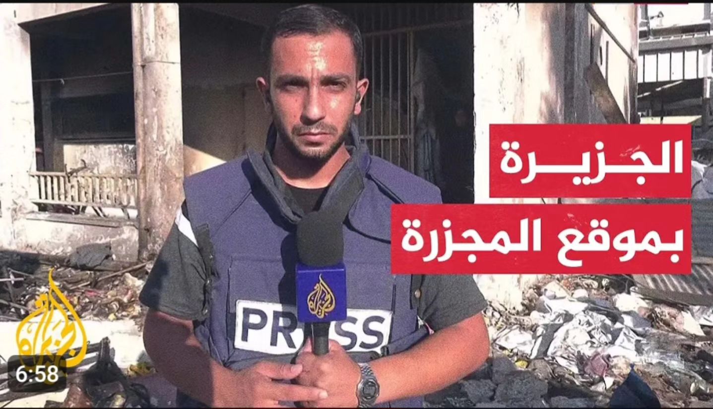 تقريري لقناة الجزيرة مباشر عن المجزرة في مخيم جباليا اليوم
