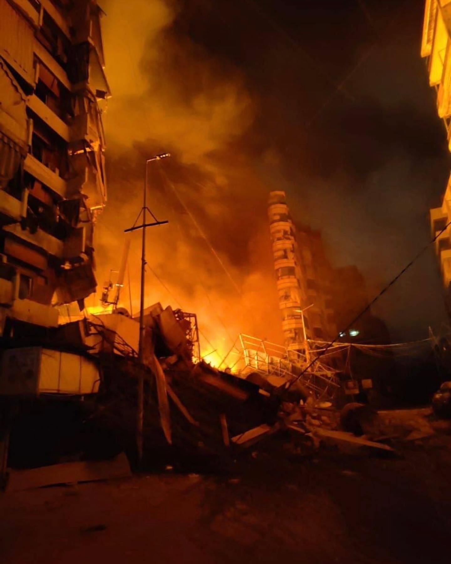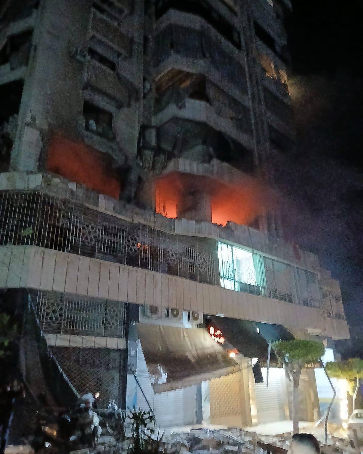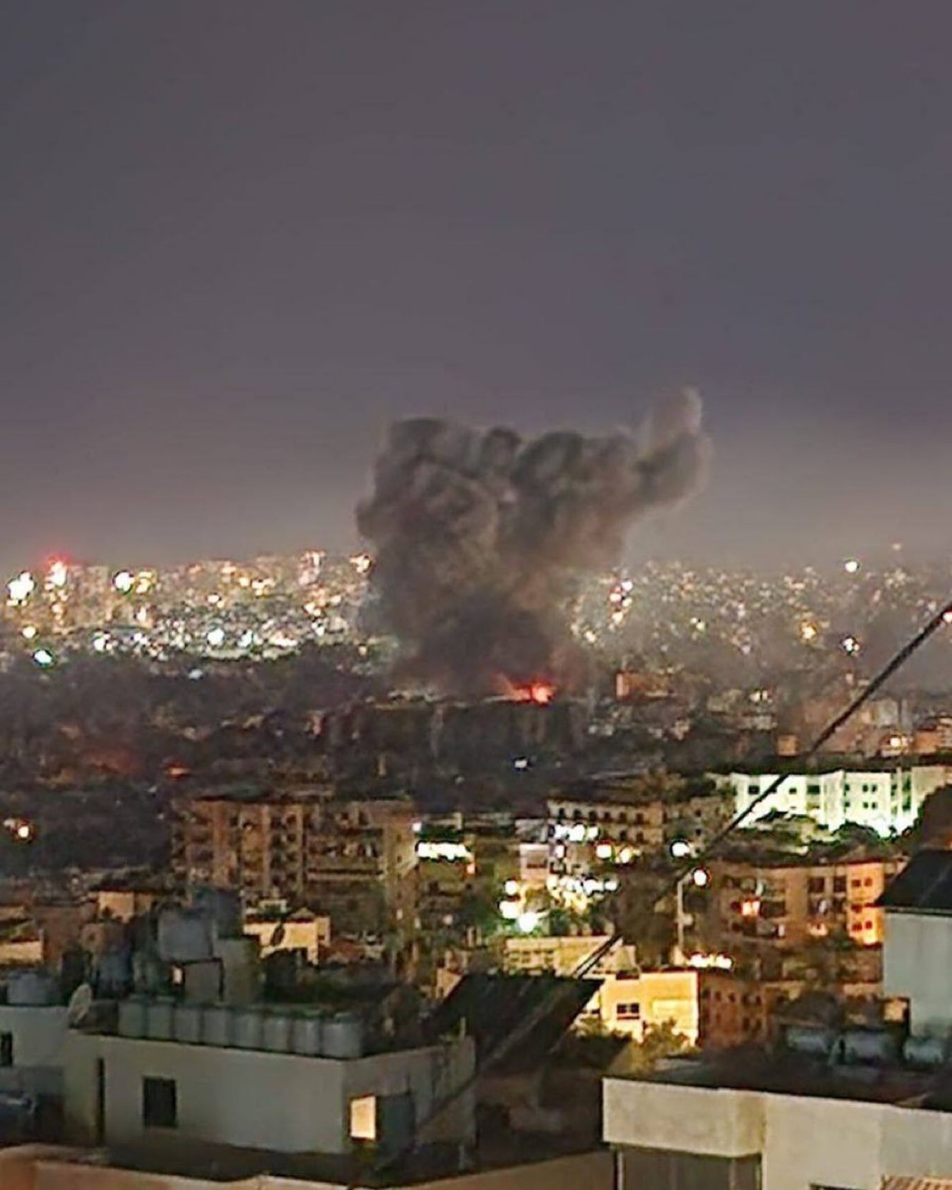 Ongoing Israeli air strikes on the southern suburb of Beirut, Dahye, early this morning.