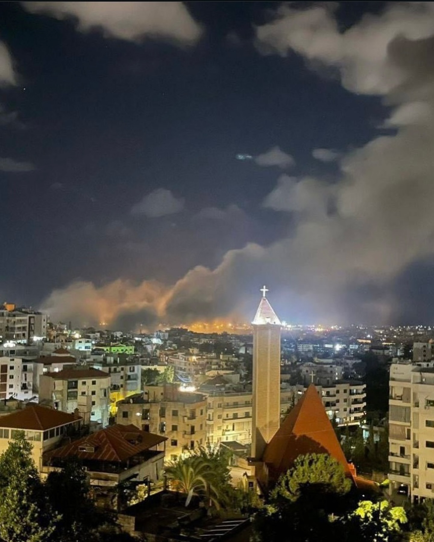The Israeli occupation is currently violently bombing the southern suburb of #Beirut, Dahye. غارات عنيفة على الضاحية الجنوبية في بيروت