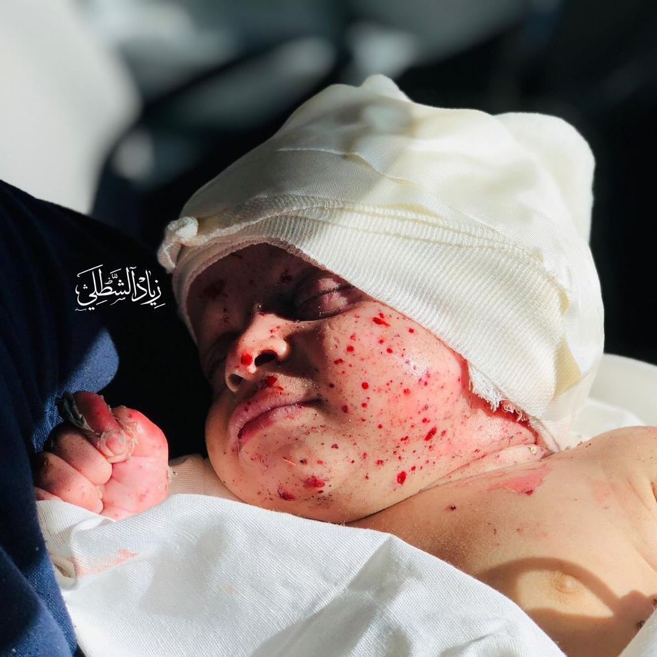 إصابة طفلة رضيعة جراء قصف منزلها A baby girl was injured in the bombing of her house