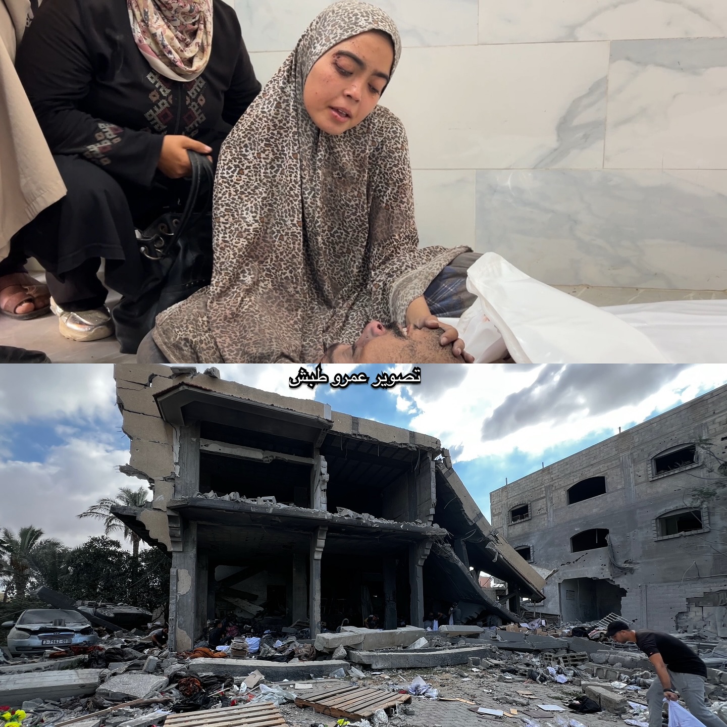 The place of the massacre committed by the IOF against the family of Al Farra in khan Younis, southern Gaza. By @hassan_eslaih من مكان مجزرة الاحتلال المروعة التي ارتكبها بحق عائلة الفرا في منطقة معن بخانيونس.