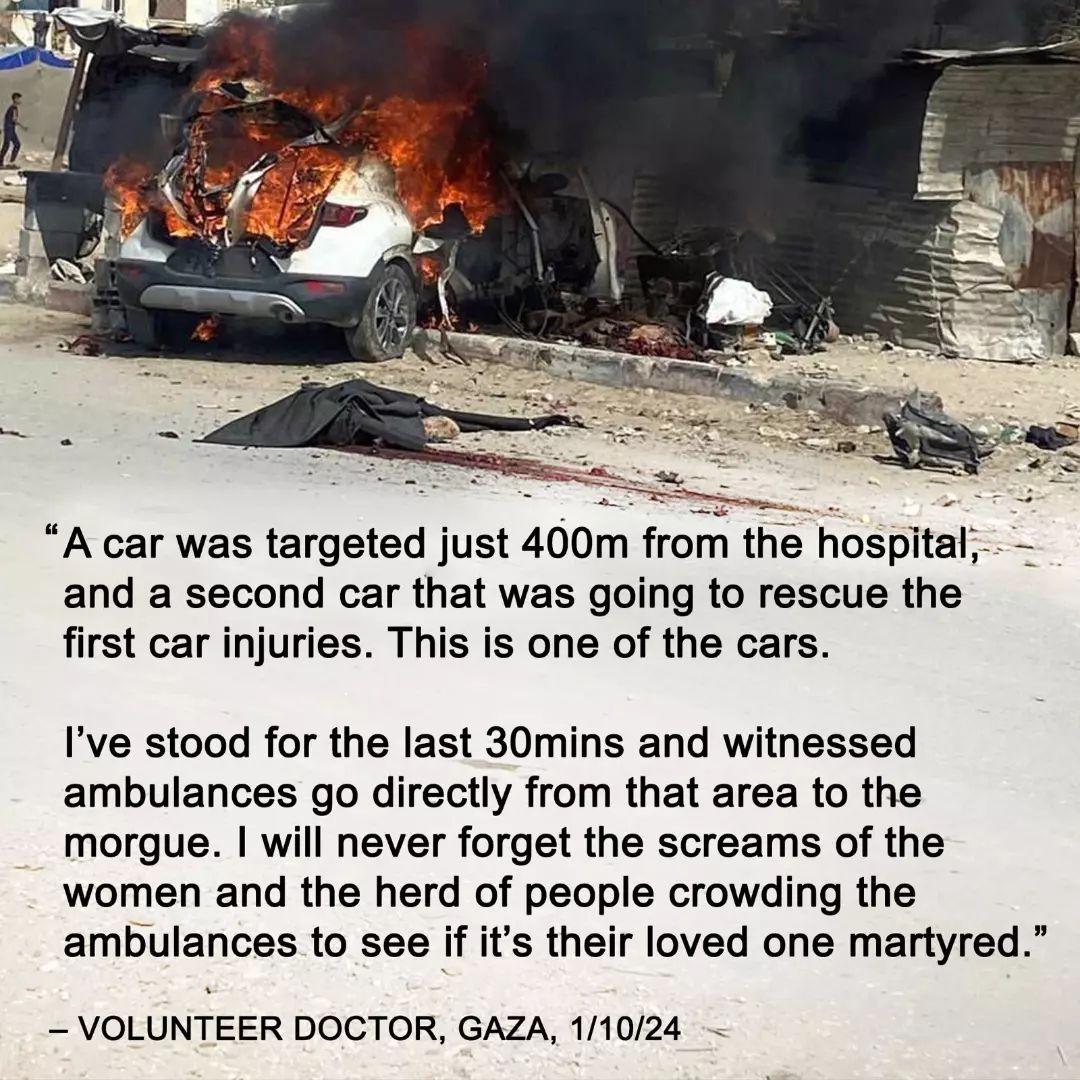 Israeli forces are continuing to wreak immense suffering on the population of Gaza. A doctor describes the mass slaughter as two cars were attacked in the immediate vicinity of the hospital.