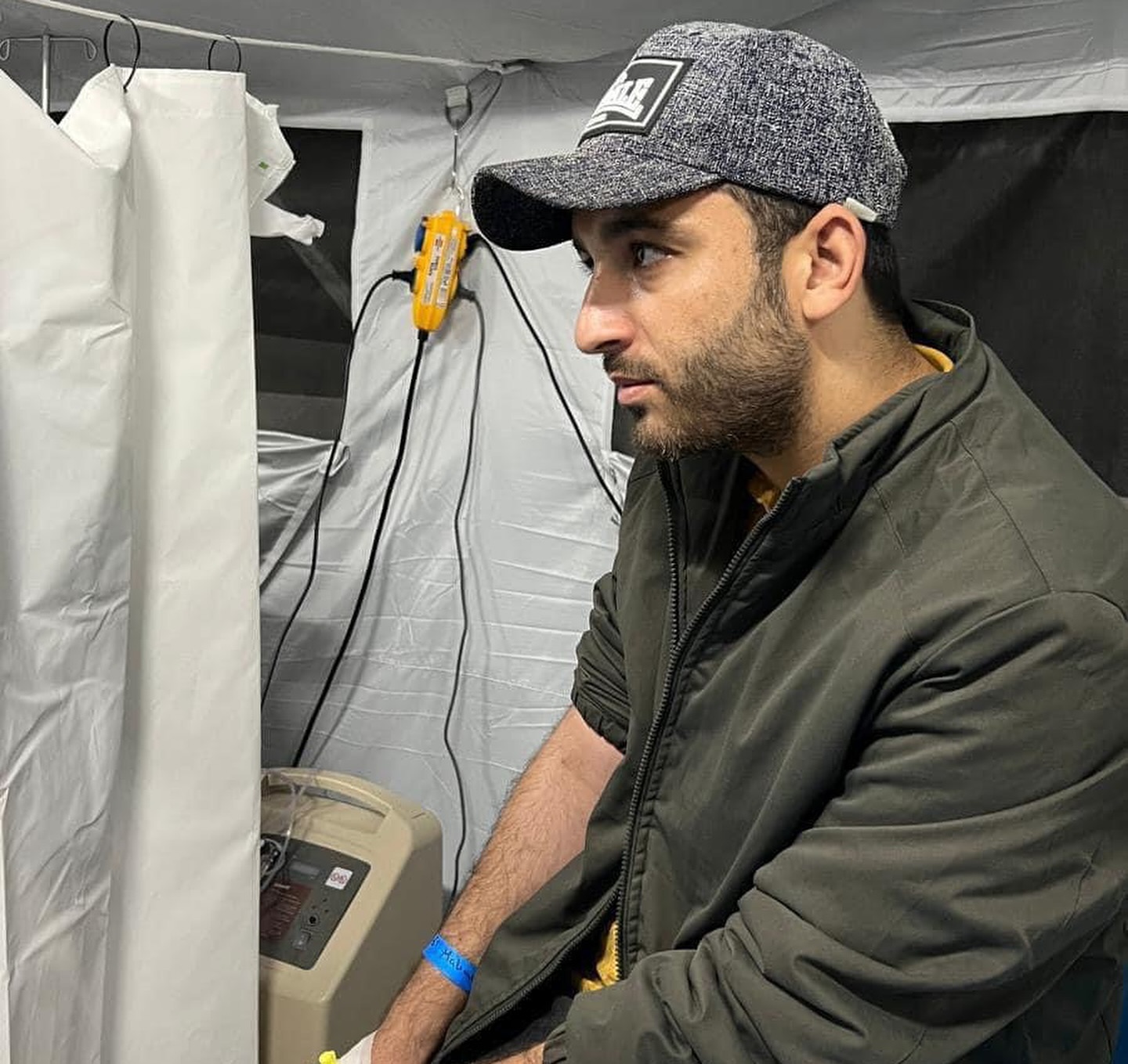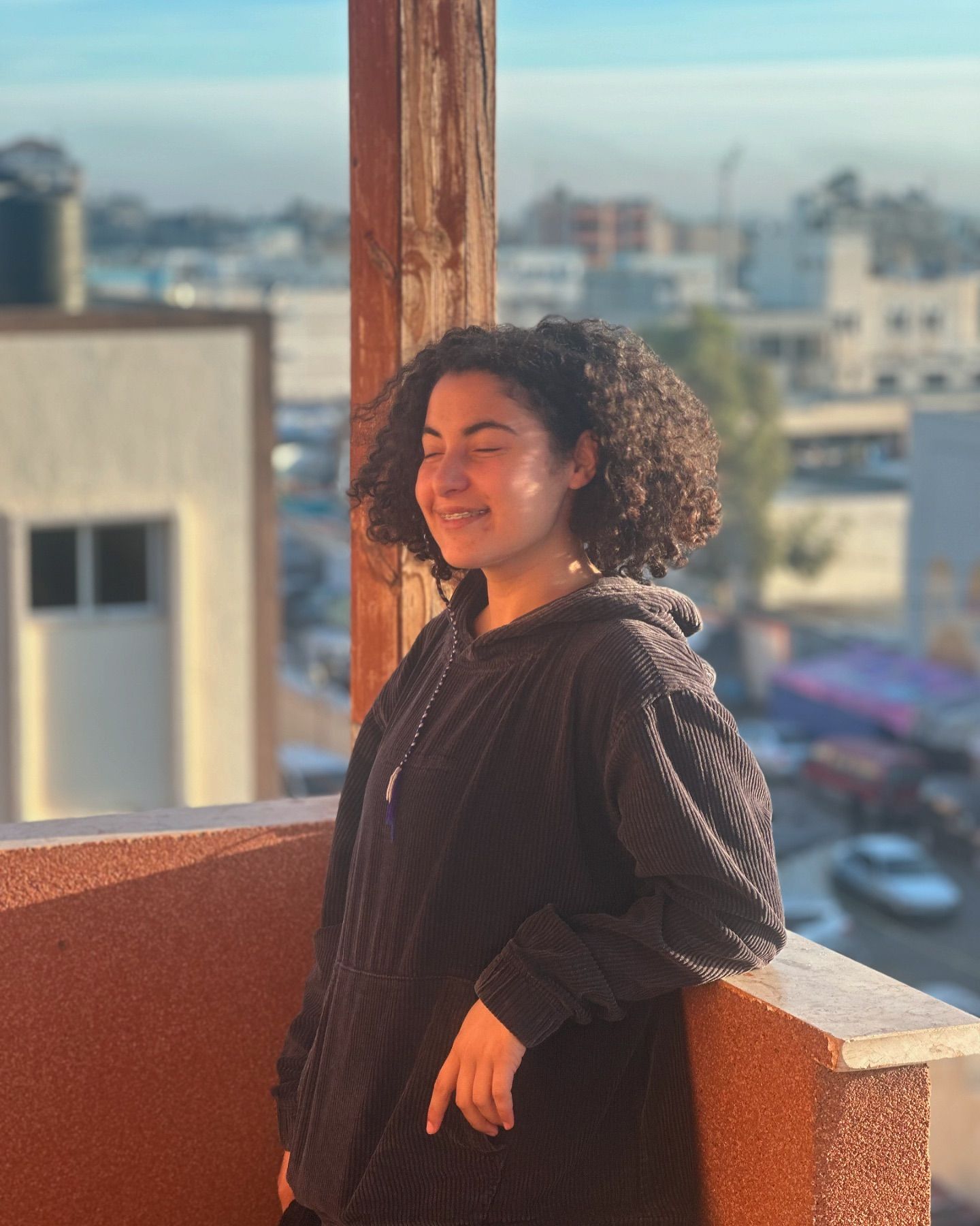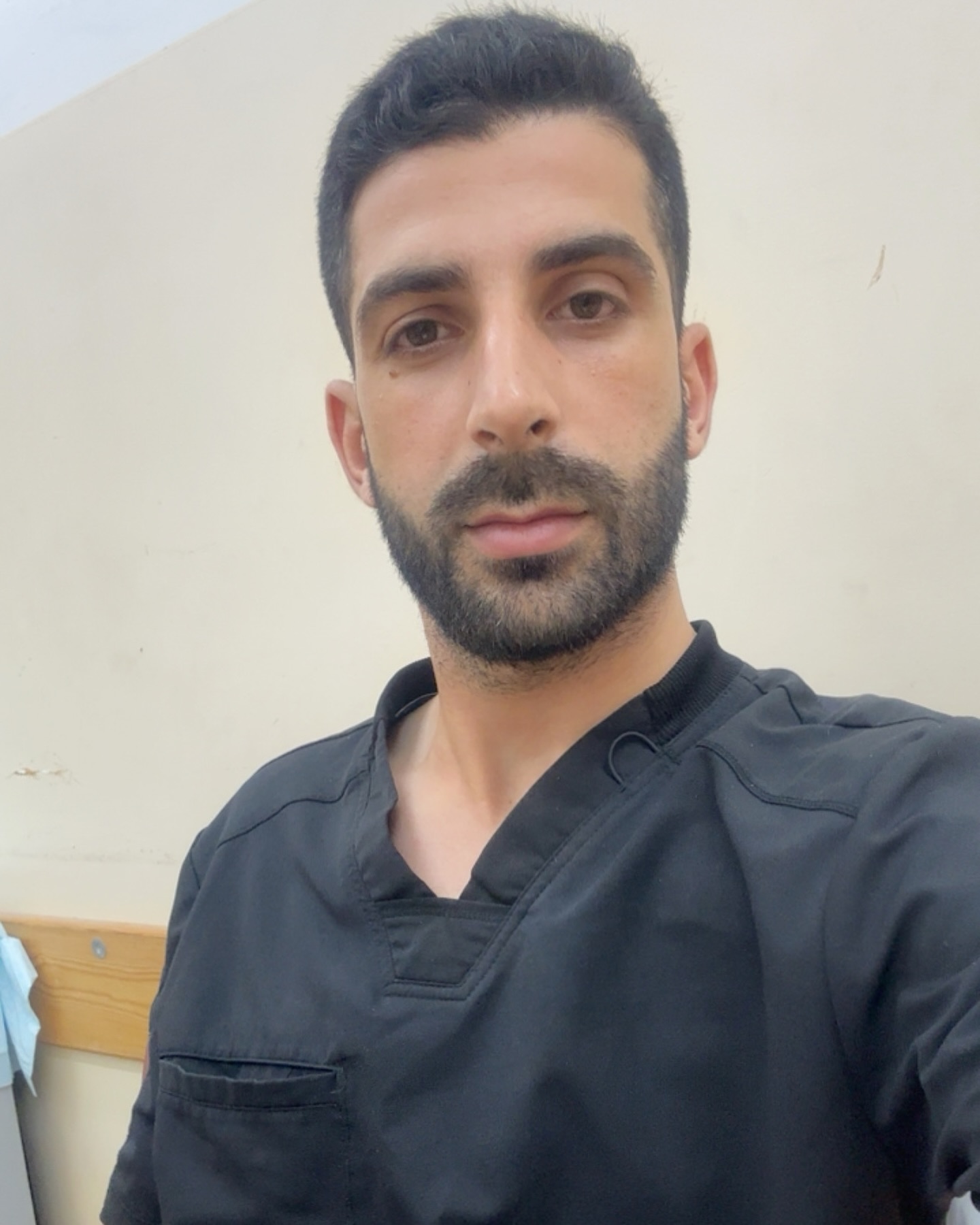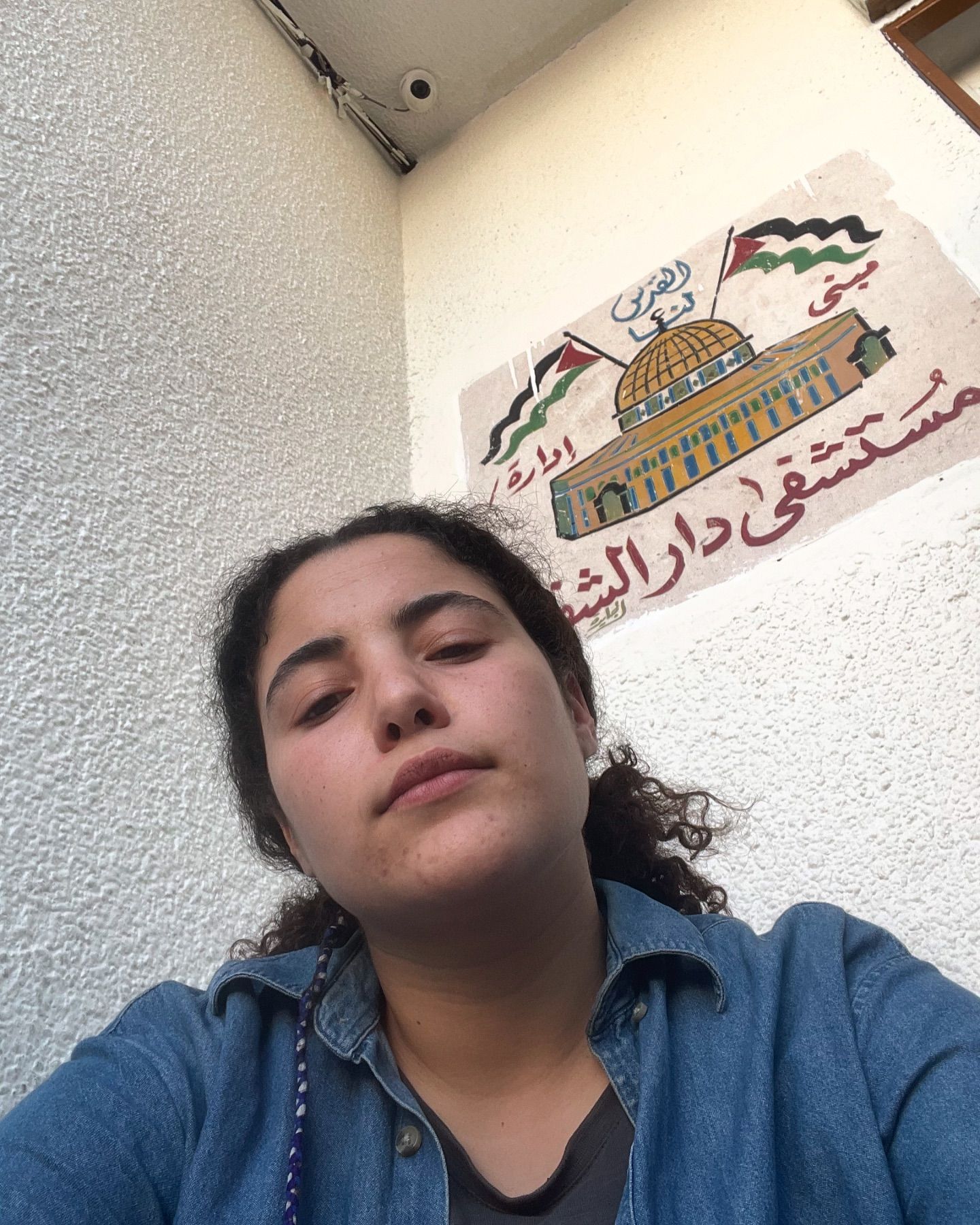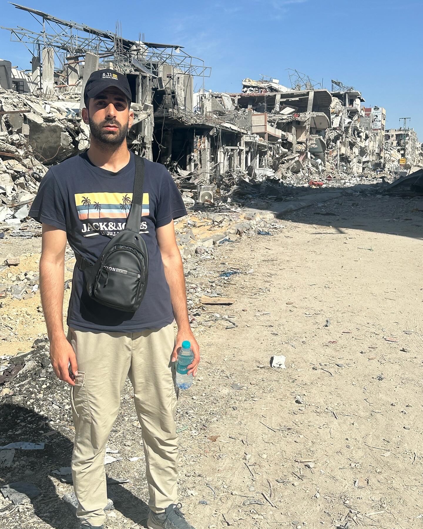 The seventh picture is after I cut my long hair because I can’t take care of it, due to the he lack of water, hair products, healthy food and hygiene products in general, and this picture is at the top roof of Nasser hospital in khanyounis to catch signal for the ESIM card so I can post the updates.