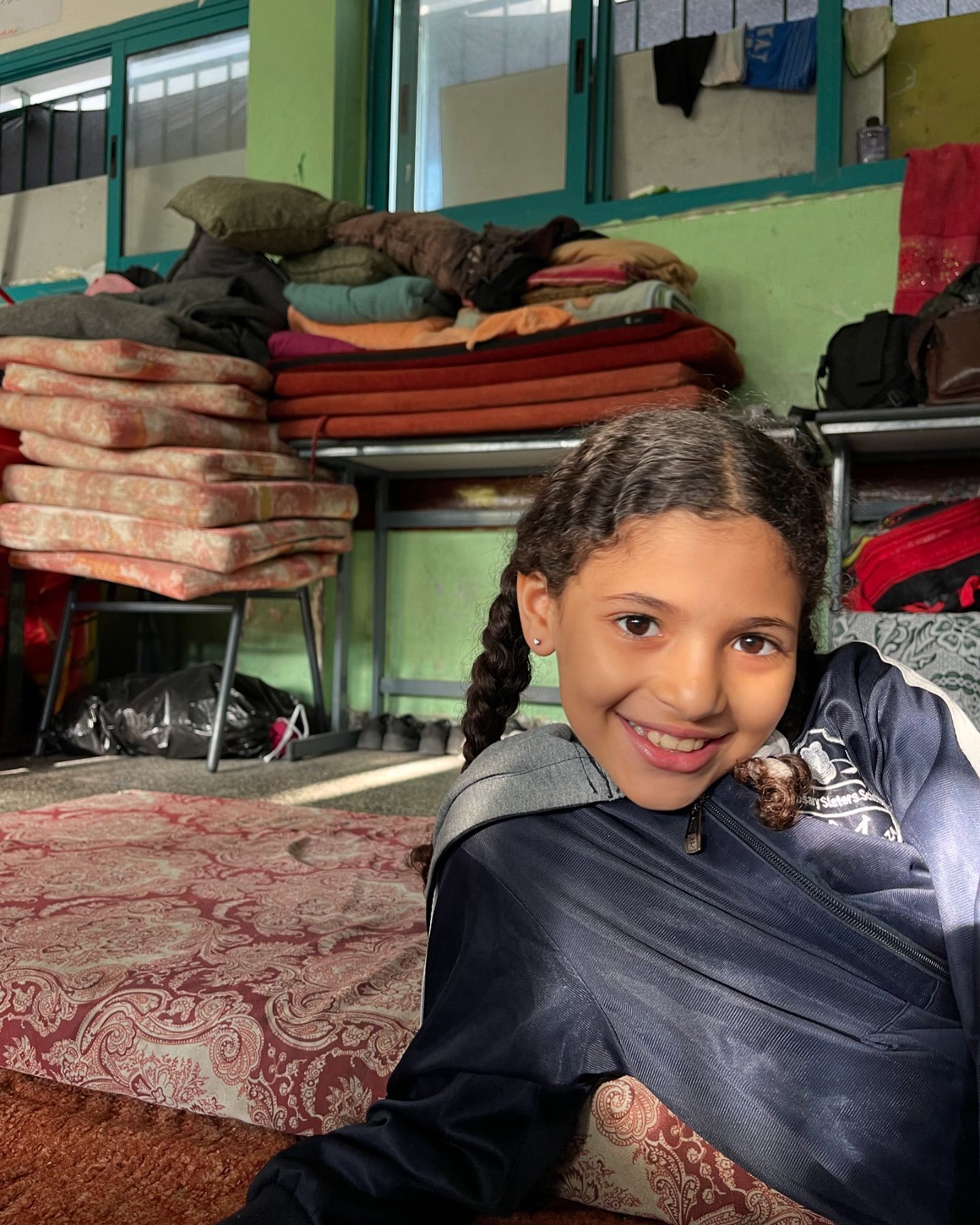 - eighth picture, Dodo my little sister an hour before leaving the north, we slept that night in a school next to the home with people we don’t know, we saw our home from the window and we couldn’t sleep in it, I remember the random bombshell of the inhabited houses, she is smiling as usual🤍