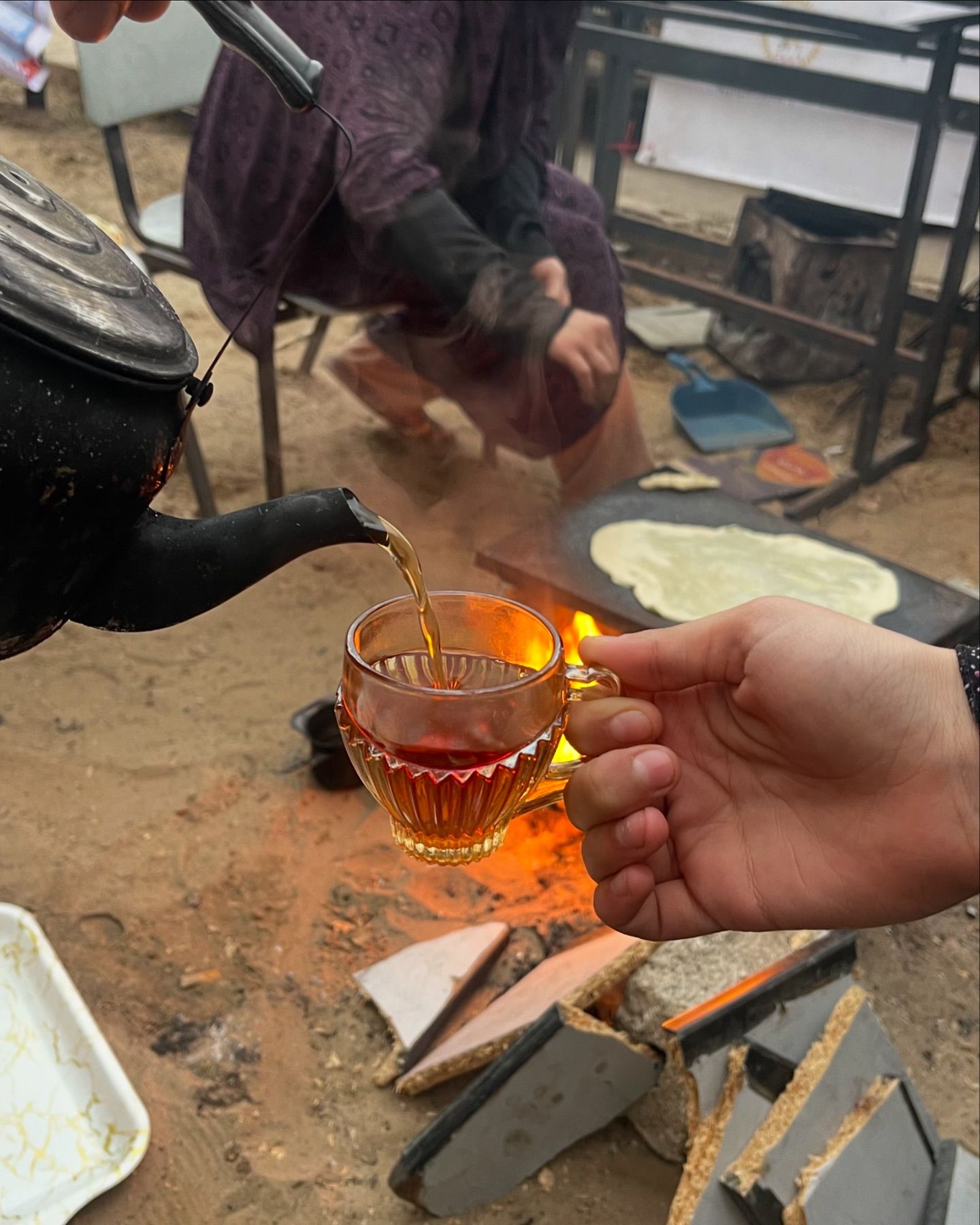 ninth picture, drinking our first family tea in the south, after leaving our home, land and everything we have in the north, and being homeless until now.