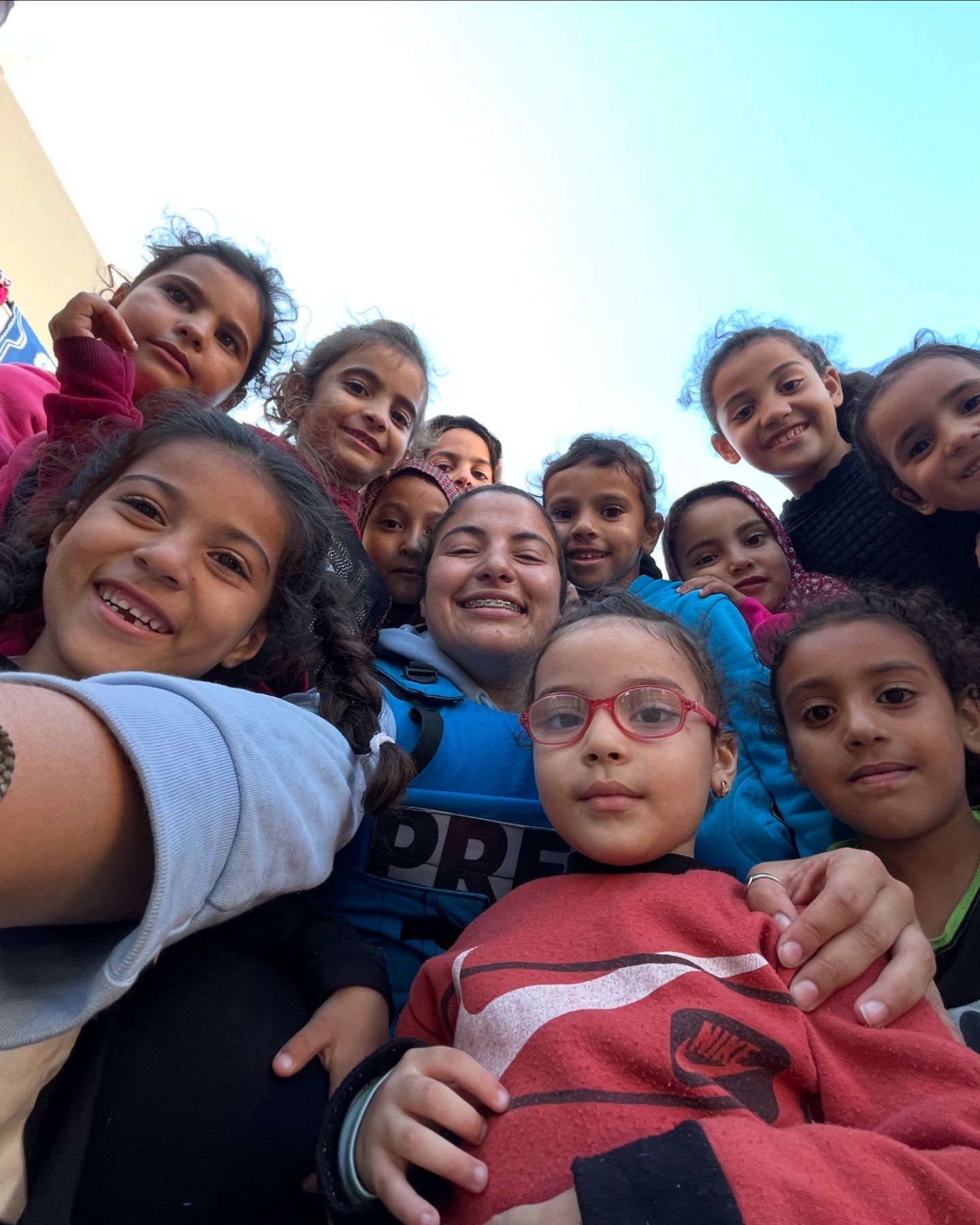 - third picture is for a group of children displaced in a school and taking a selfi after we enjoyed painting our faces with the smiles we were deprived from. - North Gaza