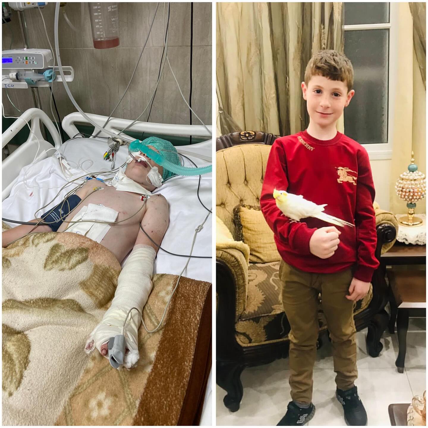 الطفل انس مهاني مصاب بشظايا بكل جسمه تحديداً (القصبة الهوائية - الرئة - الكبد -كسر بالجمجمة) و محتاج إلى علاج ضروري وسريع خارج قطاع غزة للتواصل مع عائلته +972 59‑940‑0807 وساعدونا بالنشر!