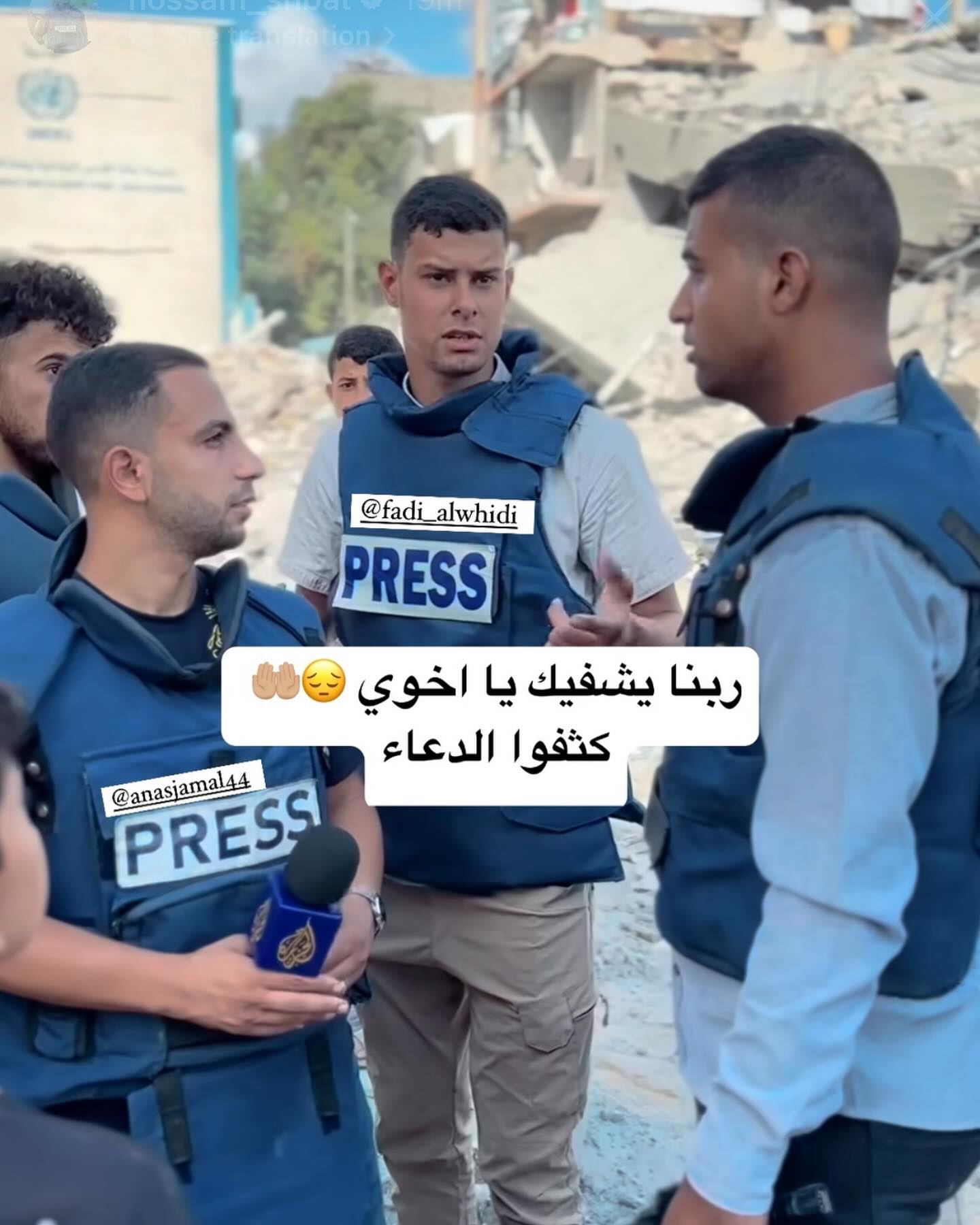 دعواتكم الخالصة للحبيب: علي العطار ( مصور قناة الجزيرة) بالشفاء العاجل .. فهو بحاجة ماسة للدعاء بعد إصابته بشظية في رأسه...!!😢😢 #غزة #فلسطين #palestine #followme #gazaunderattack #gaza #instagram