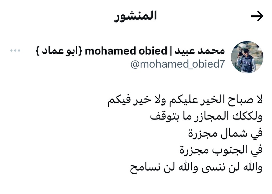 Israeli occupation forces killed the young man “Omar Balawi” After few hours of posting this “from northern #Gaza,We are steadfast, We will not leave except to heaven.