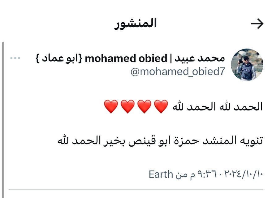 الحمد لله طلعت إشاعة وحمزة بخير مصدر من عائلته ❤️❤️❤️❤️
