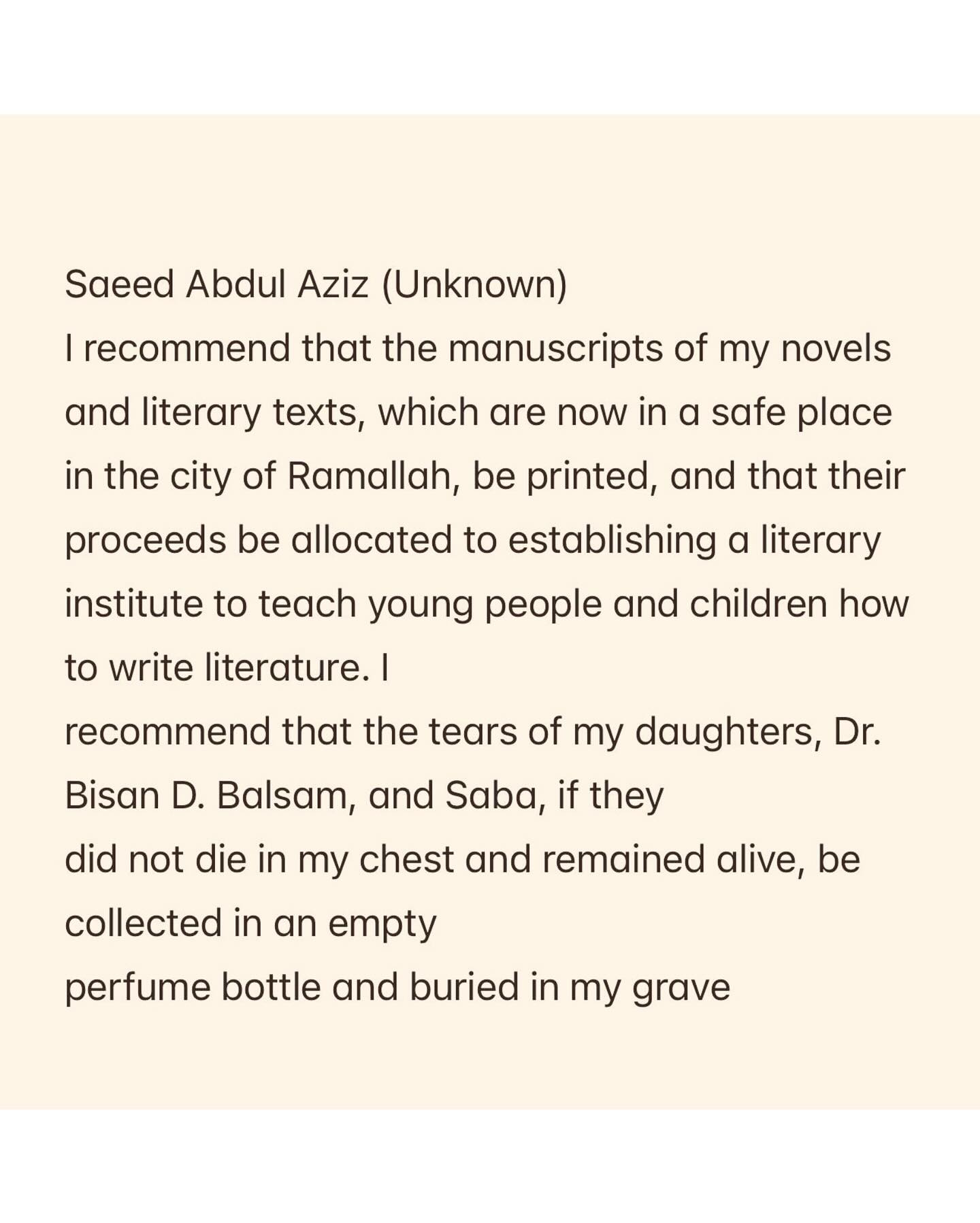 Wills written by the men, women, and children of Gaza throughout the last year. @mo_elhelo21