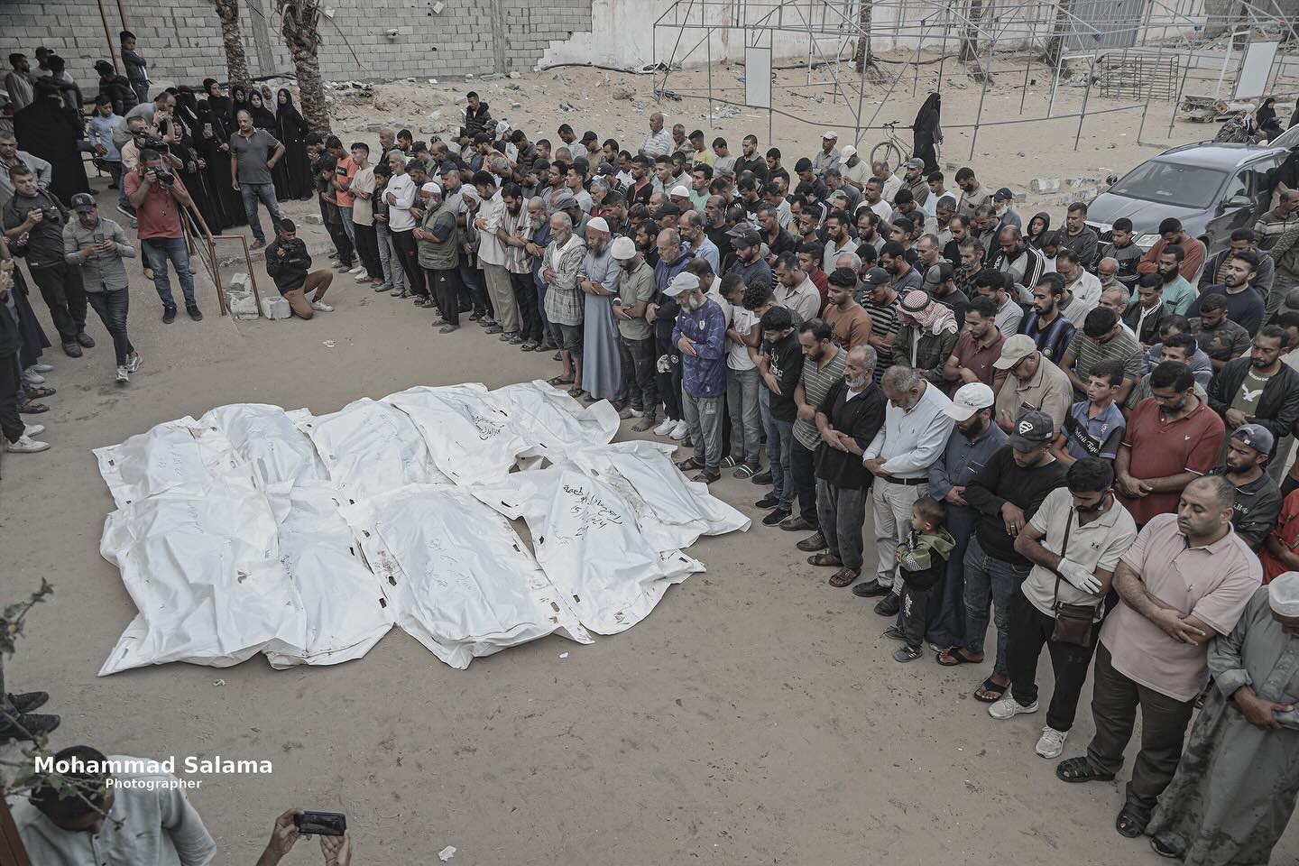 Members of the Abu Taima family bid farewell to their relatives who were killed by Israeli air strikes in central Gaza. By @mohammad_salama.2 تشييع شهداء عائلة أبو طعيمة من داخل مجمع ناصر الطبي