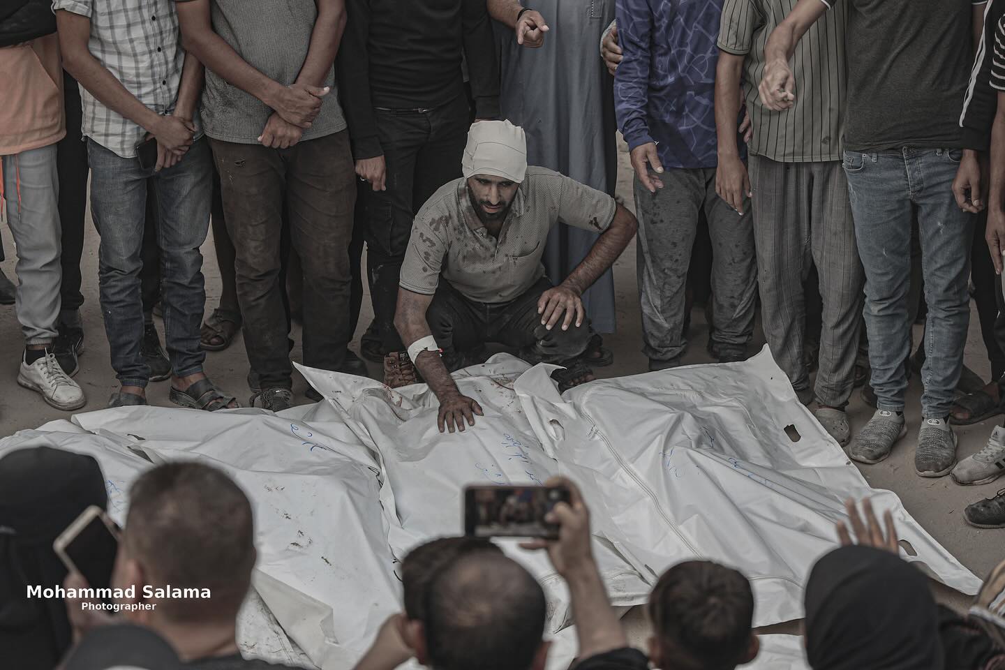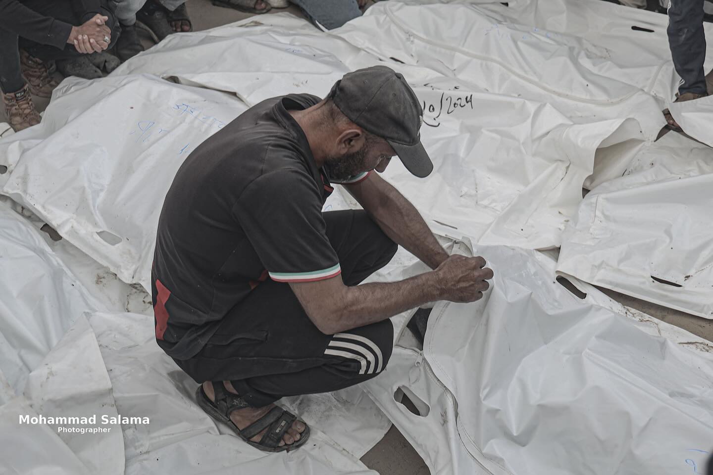 “Please wake up dad” … a Palestinian bids farewell to his father who was killed by the ongoing Israeli air strikes in Gaza. By @badertabash شاب يودع والده الذي ارتقى في القصف المتواصل على قطاع غزة