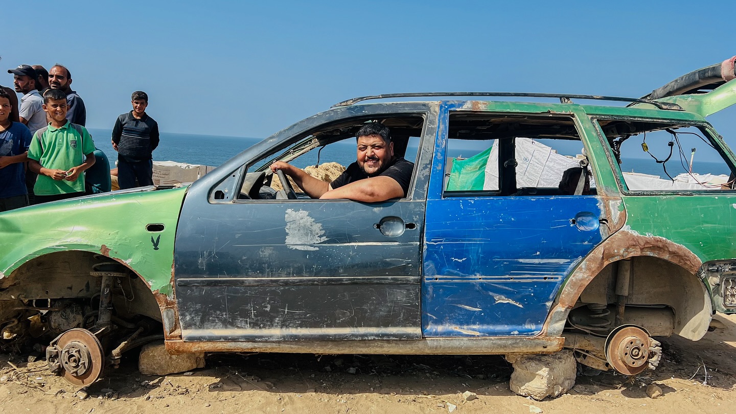 يلا بلد آخر راكب يا بلد.. 😃 The condition of this car is similar to the condition of the Gaza Strip and its people after the war.