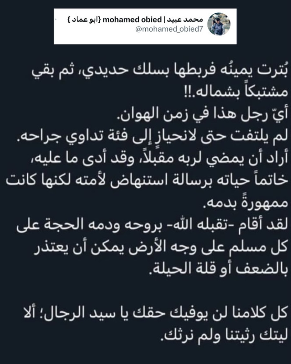 اقسم بالله كلي فخر وعزة اني صورتك فيديو وقعدت معك وكان سبب اعتقالي هذا الفيديو الله يرحمك يا سيد الرجال الله يرحمك يا قائدنا 🫡💔