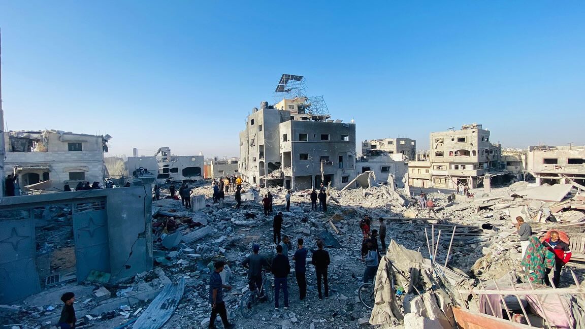 The extent of the destruction in the Abu Qamar station area, north of Gaza #شمال_غزة_يباد