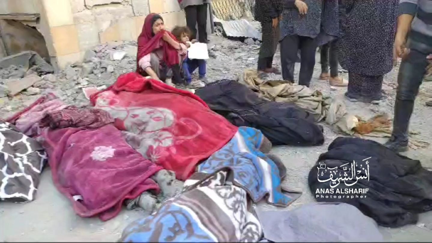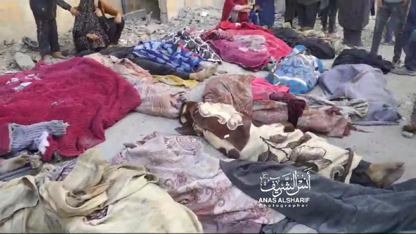 Here in Beit Lahia, where the Israeli occupation forces committed a horrific massacre that resulted in the martyrdom and injury of dozens, the martyrs will be buried in the town market. This massacre occurred at a time when the occupation prevents ambulance and civil defense crews from working in the town.