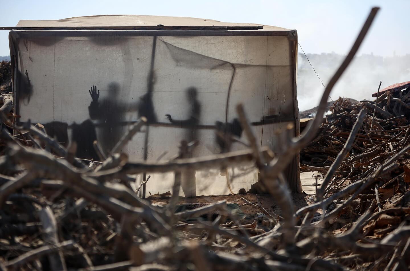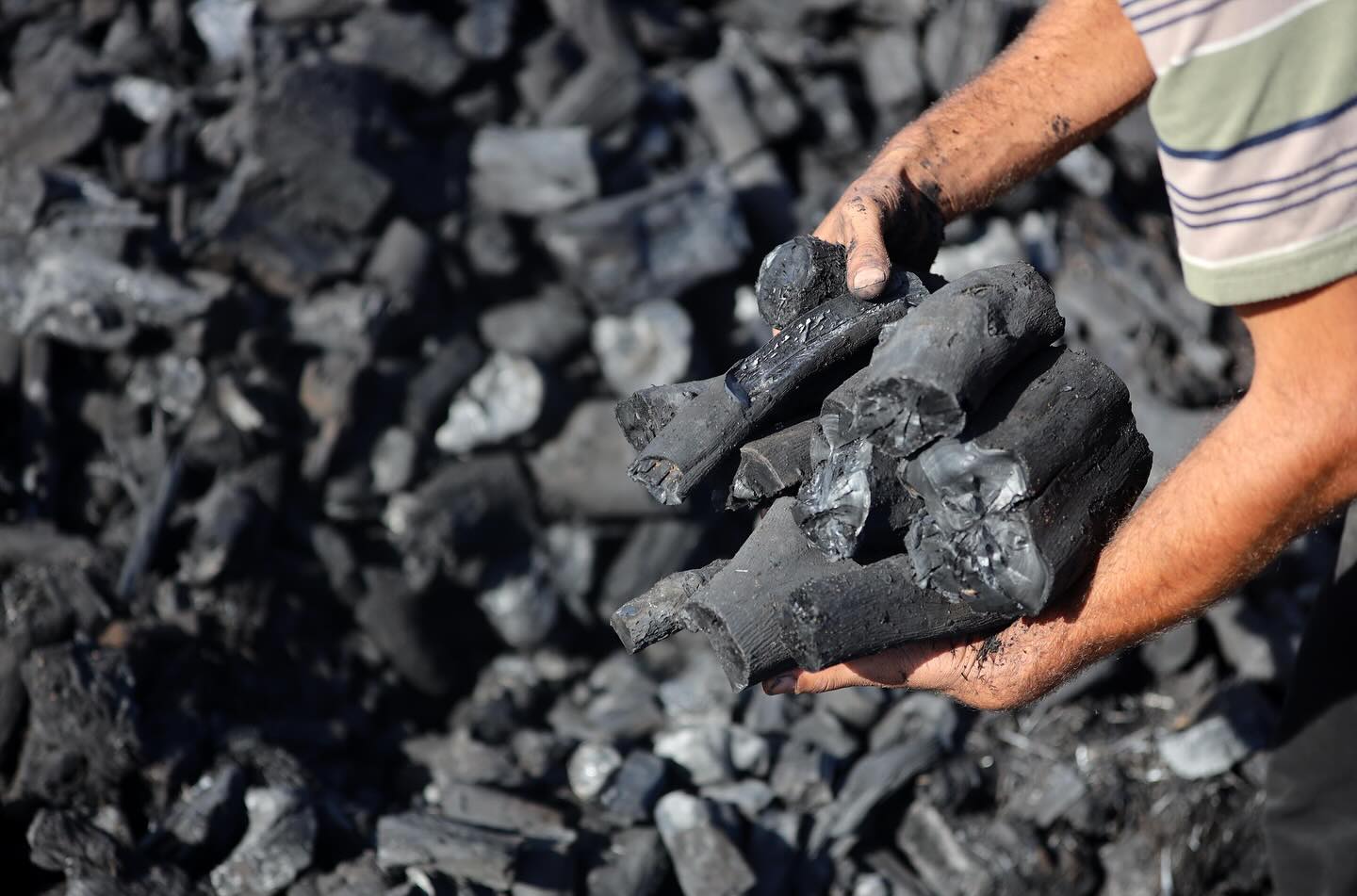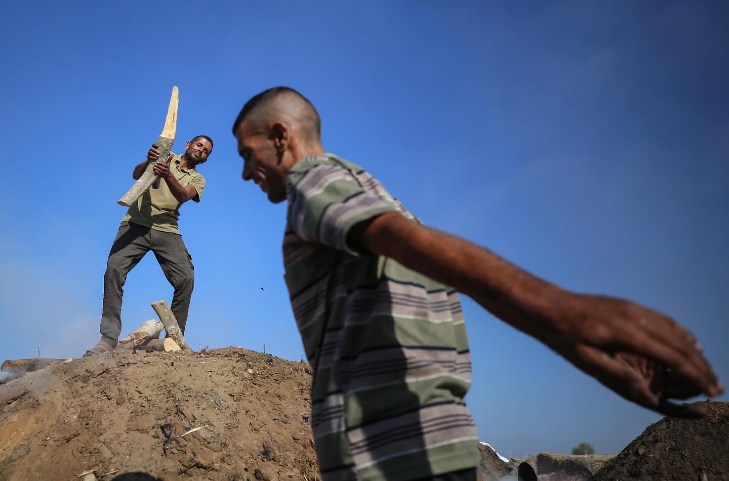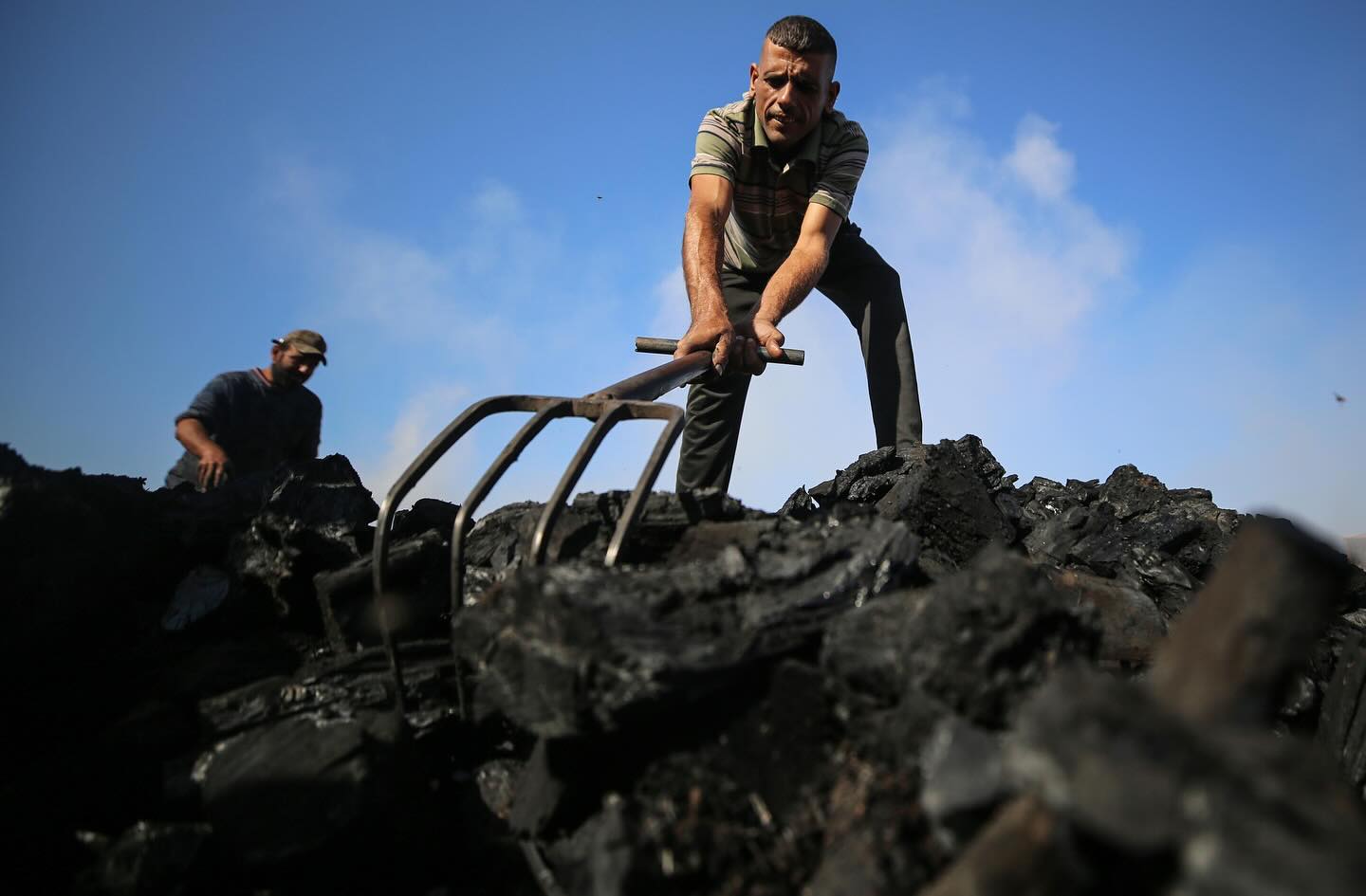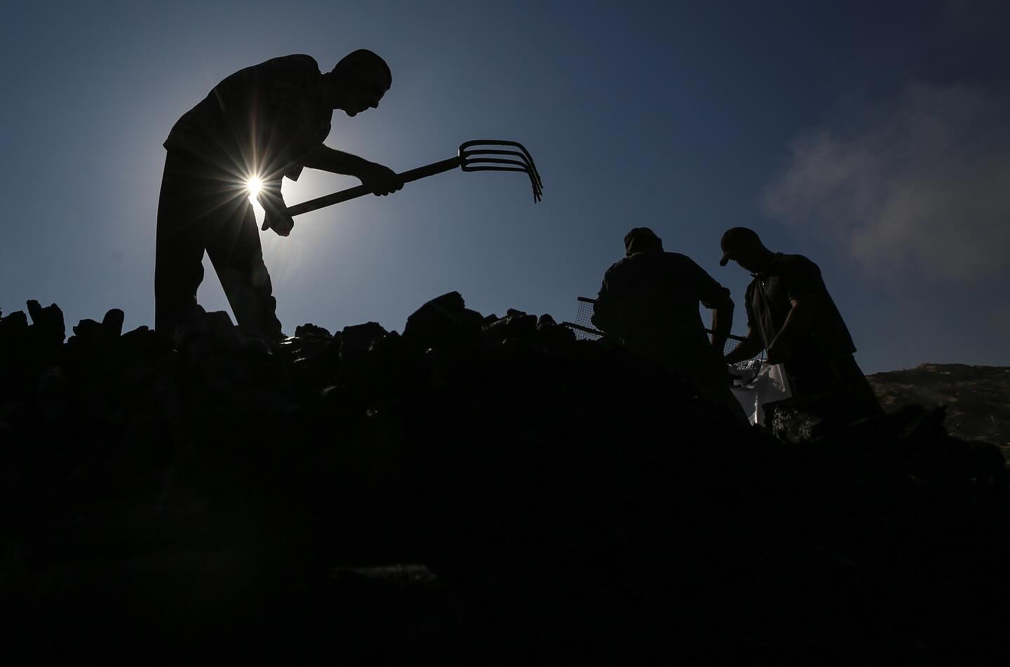 Palestinians work at a coal production facility in Khan Younis, southern Gaza Strip, on October 30, 2024, photo by majdi fathi