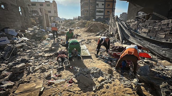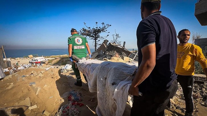 مشهد موجع… مسعف في الهلال الأحمر توجه لإسعاف وإنقاذ ضحايا نتيجة قصف استهدف مركبة مدنية في مخيم المغازي وسط القطاع، نقل شهيدة مجهولة، وعند وصوله إلى غرفة العناية داخل مشفى شهداء الأقصى هناك تكشف عن وجهها، وجد والدته ملطخة بالدماء، نعم! والدته شهيدة… صدمة تلو صدمة، ووجع يكبر ويكبر ويكبر