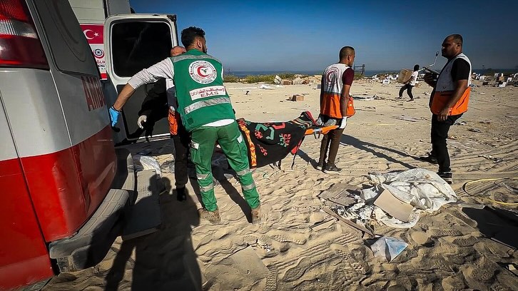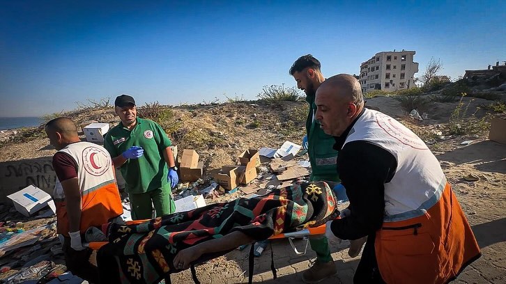 تمكنت طواقم الخدمات الطبية من انتشال 3 شهداء أثر إستهداف المواطنين على شاطى بحر غزة في منطقة السودانية غرب مدينة غزة Medical services teams were able to recover 3 martyrs after targeting citizens on the beach of the Gaza Sea in the Sudanese area west of Gaza City