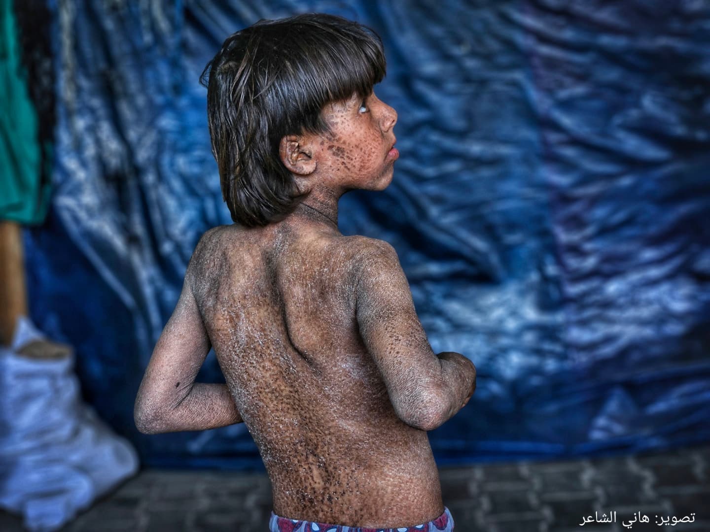 مؤلم.. #صور | الطفل يزن علوان وشقيقته زينة يعانيان من مرض الصدفية الذي تفشى في جسديهما خلال الحرب لعدم توفر علاج لهما داخل القطاع وحرمانهما من السفر للعلاج في الخارج بسبب إغلاق المعابر ؛ ويخوف والديهما من أن يتسبب ذلك في مرض سرطان جلدي. #غزة #فلسطين #palestine #gazanation #gazaunderattack #gaza