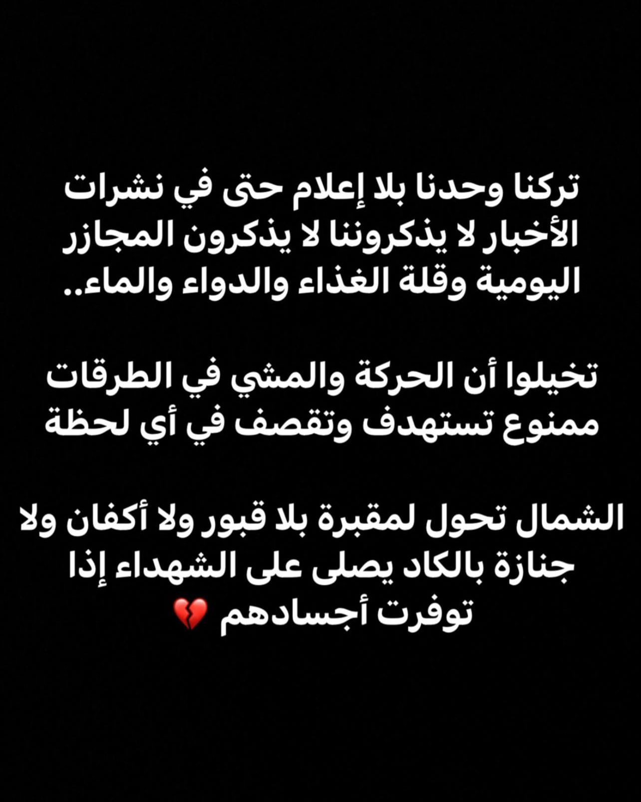 شمال غزة يُباد .. 402‼️ الحرب في يومها الـ402 مذابح متواصلة .. عشرات الشهداء والجرحى والمفقودين تحت ركام المنازل ، لا يوجد إسعافات لا يوجد دفاع مدني. #انتهى #شمال_غزة_يُباد "El norte de Gaza está siendo aniquilado. La guerra [de exterminio sionista] cumple 402 días, continuas masacres. Decenas de mártires, heridos y desaparecidos bajo escombros de las casas. No hay primeros auxilios, no queda defensa civil."