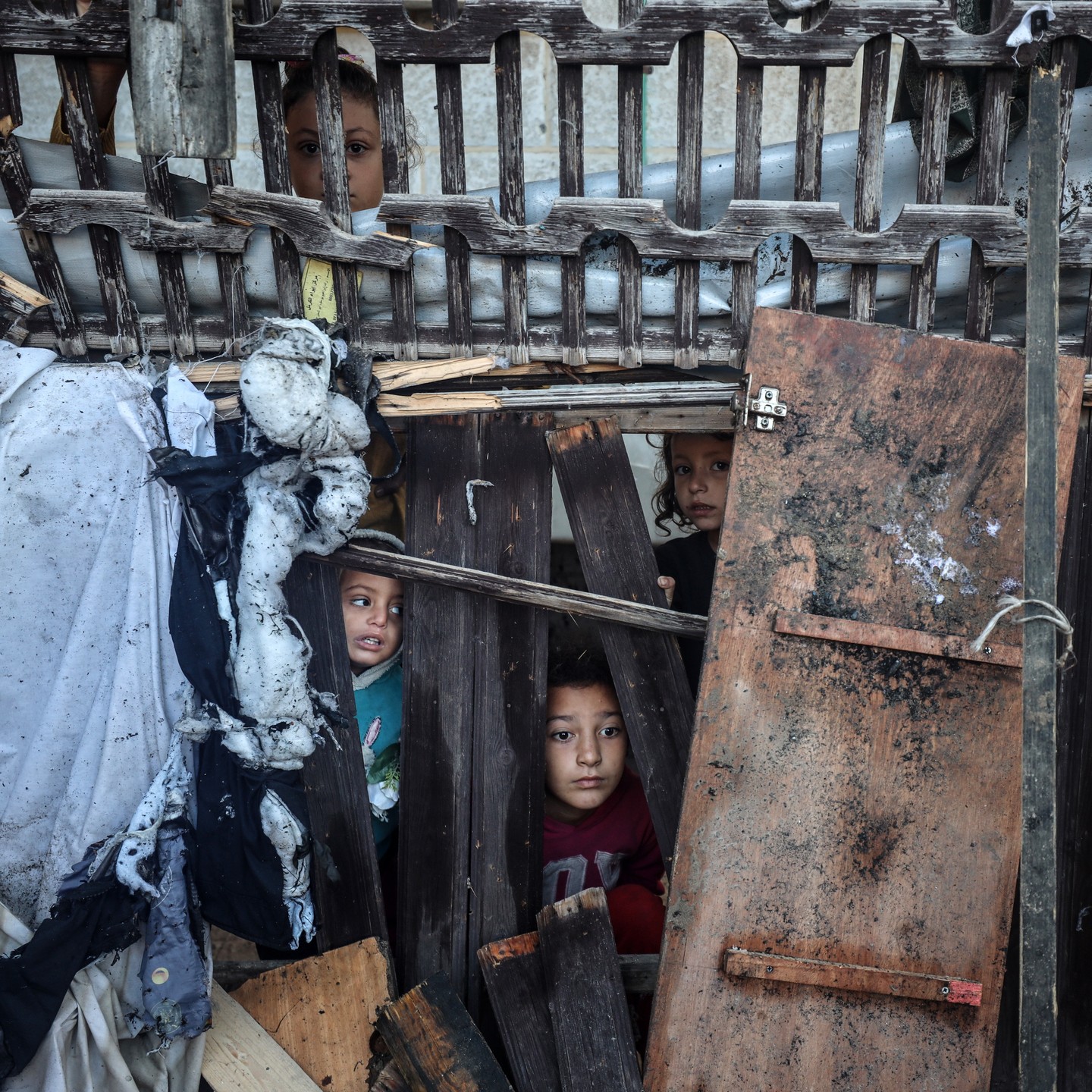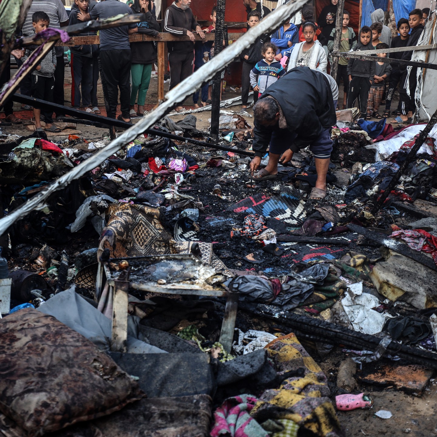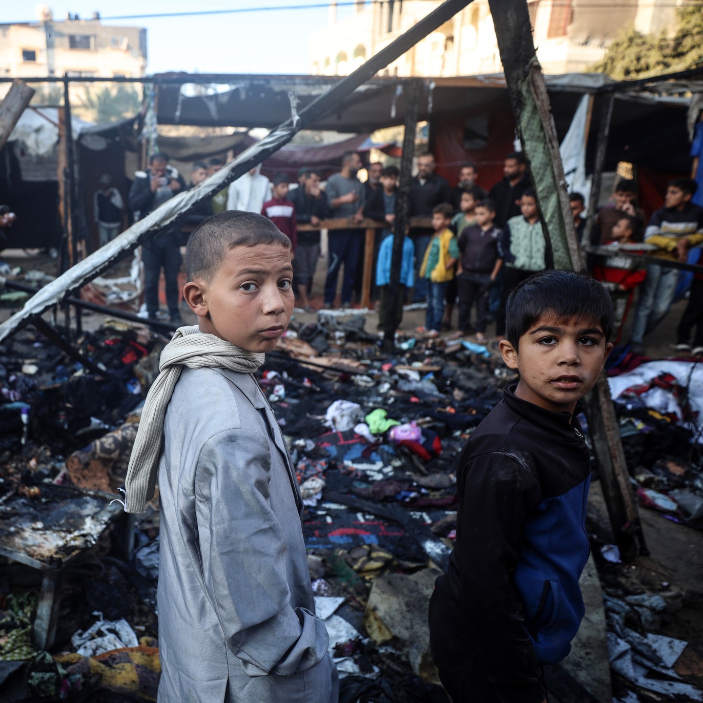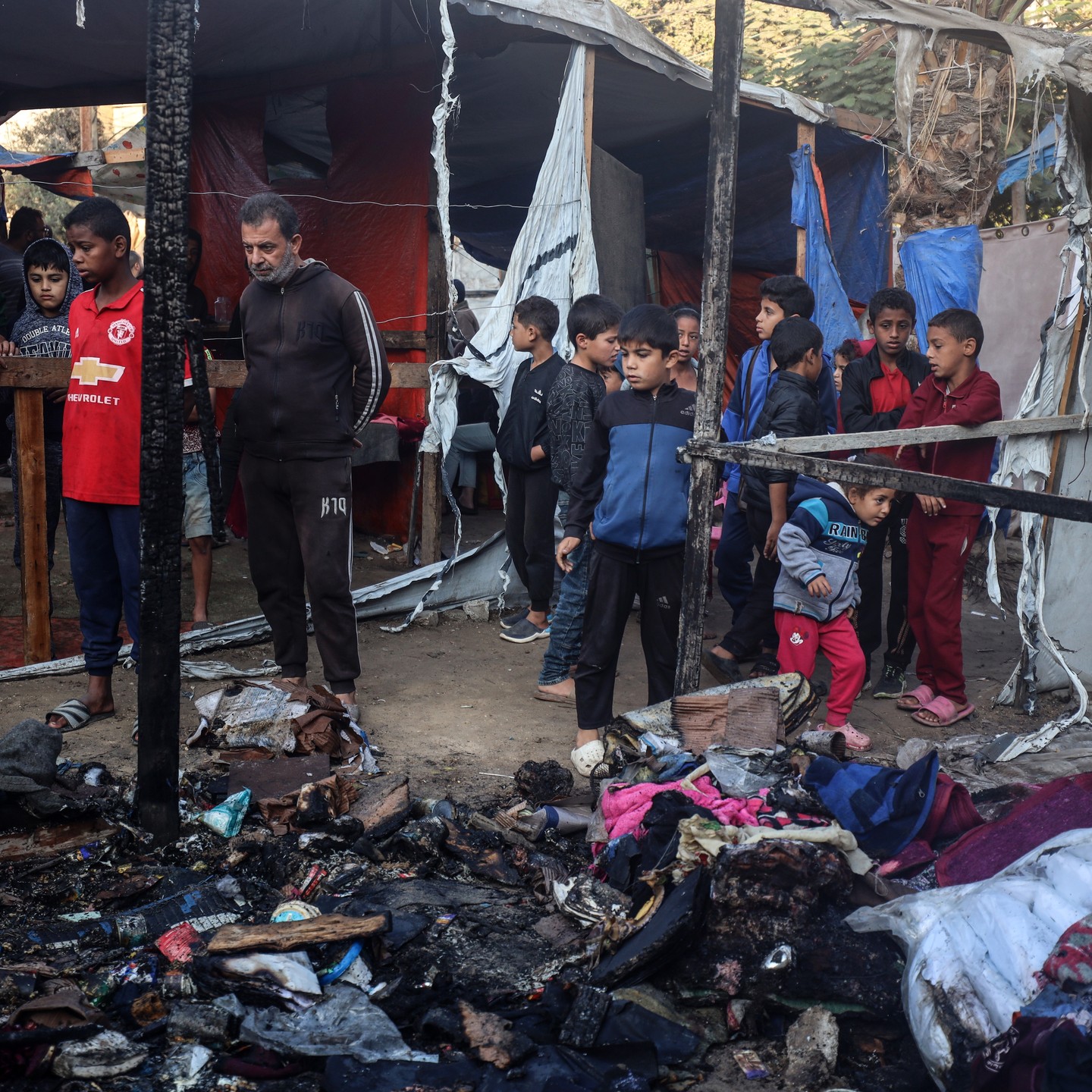 #Displaced #Palestinian |#children view the site of an #Israeli #strike on a #tent housing displaced #people, in Deir el-Balah in the central #Gaza Strip on November 13, 2024, #photo by majdi fathi