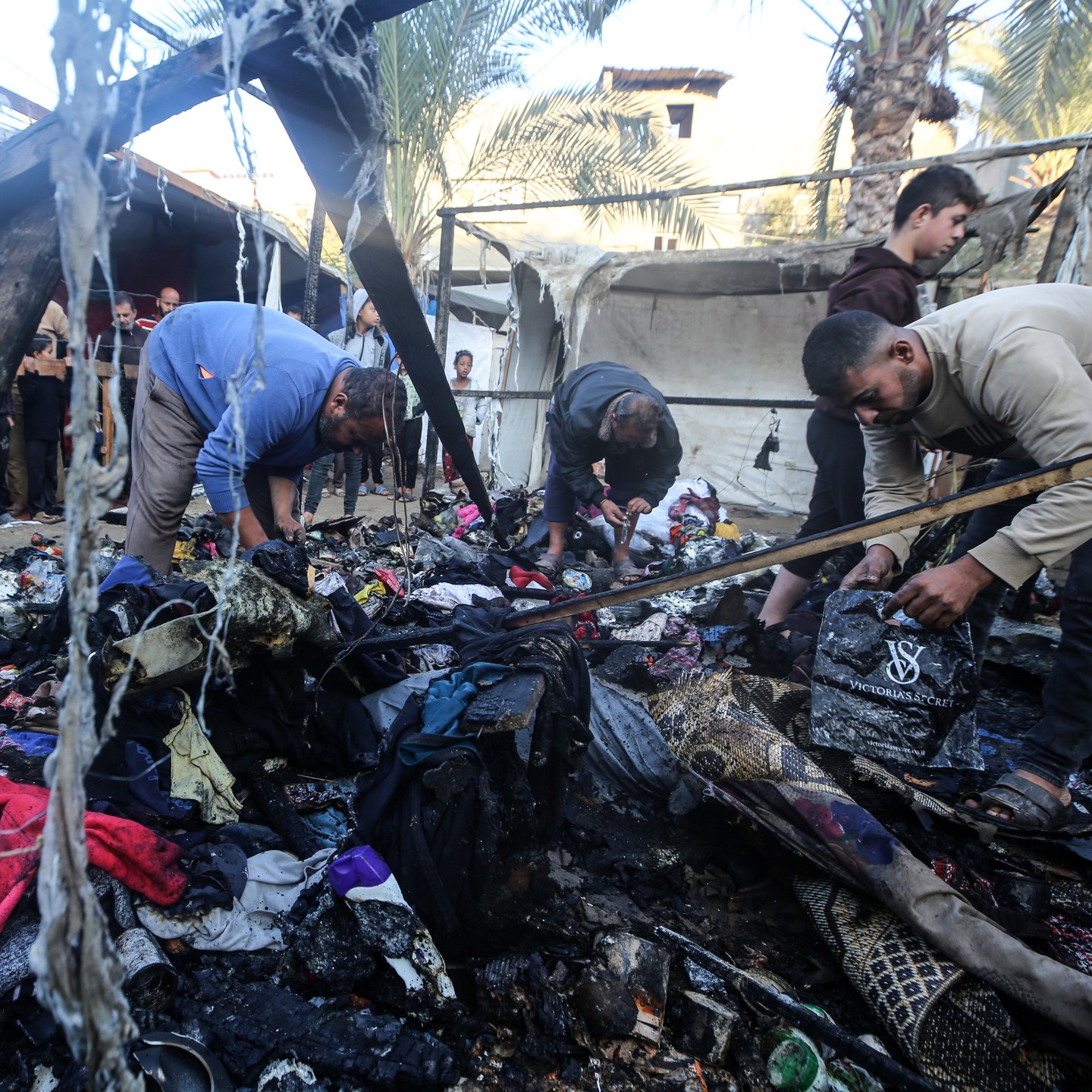 قصف خيام للنازحين بمدينة دير البلح وسط قطاع غزة. Bombing tents for displaced people in the city of Deir al-Balah in the central Gaza Strip.