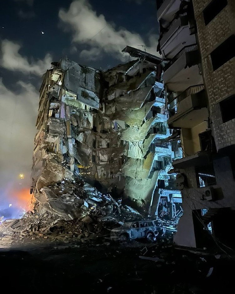 A residential building destroyed by the Israeli air strikes in the southern Suburb of Beirut. طيران الاحتلال يدمر مبنى سكني في الضاحية الجنوبية لمدينة بيروت