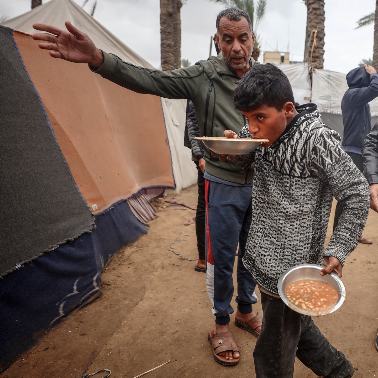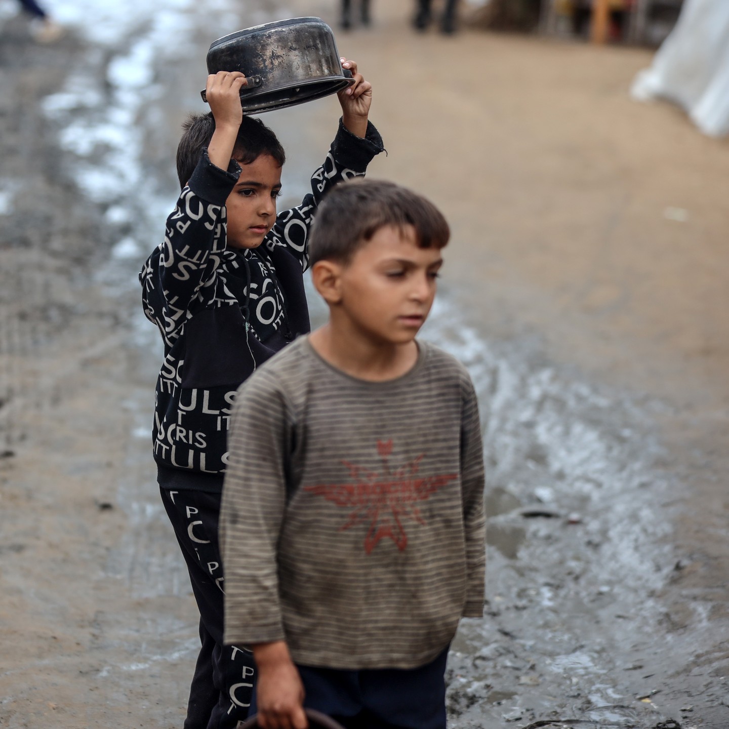 Palestinian children try to get food despite of the cold and rainy weather. By @soliman__farra اطفال يحاولون الحصول على الطعام رغم الأمطار والبرد