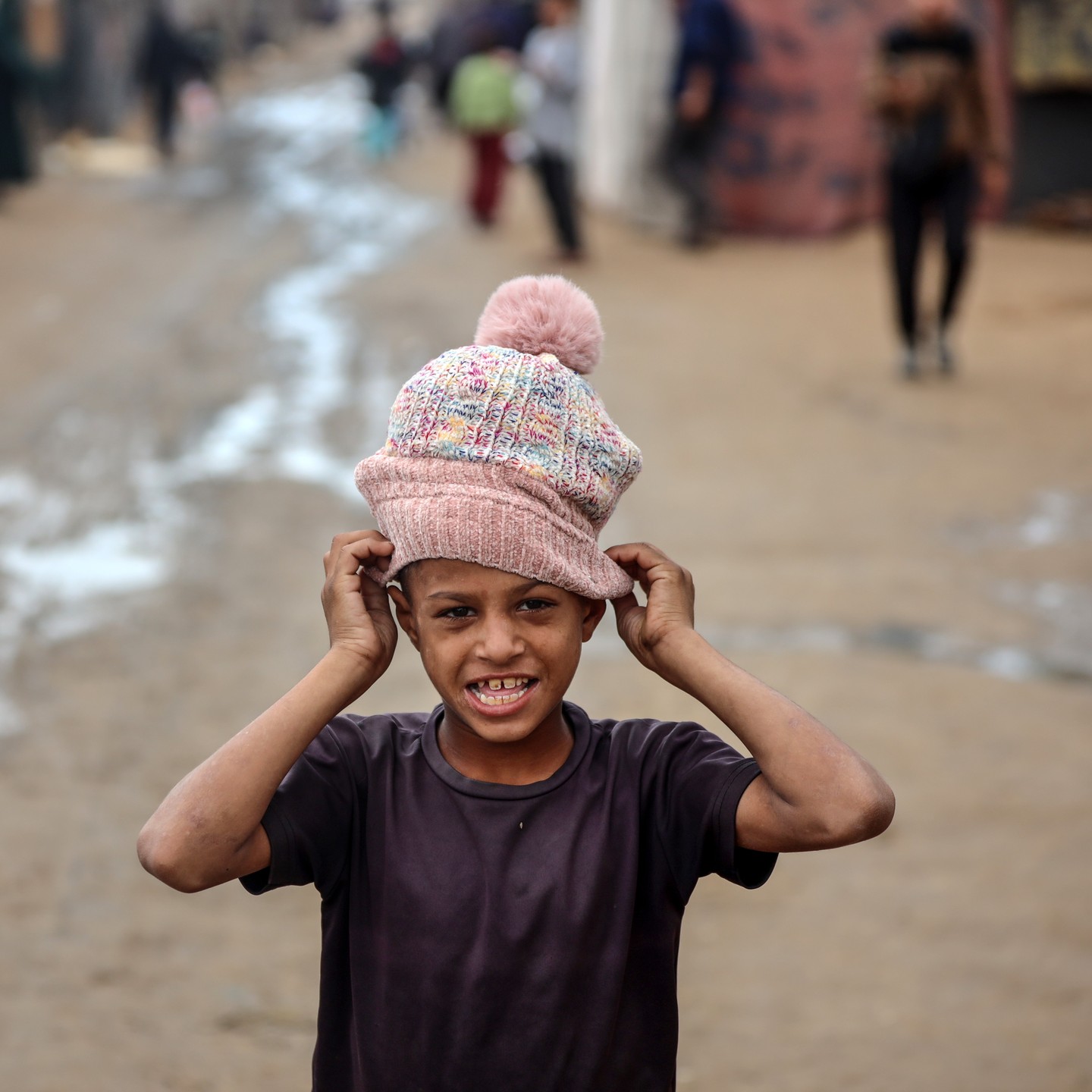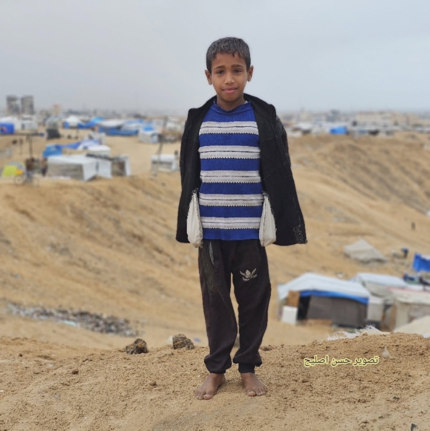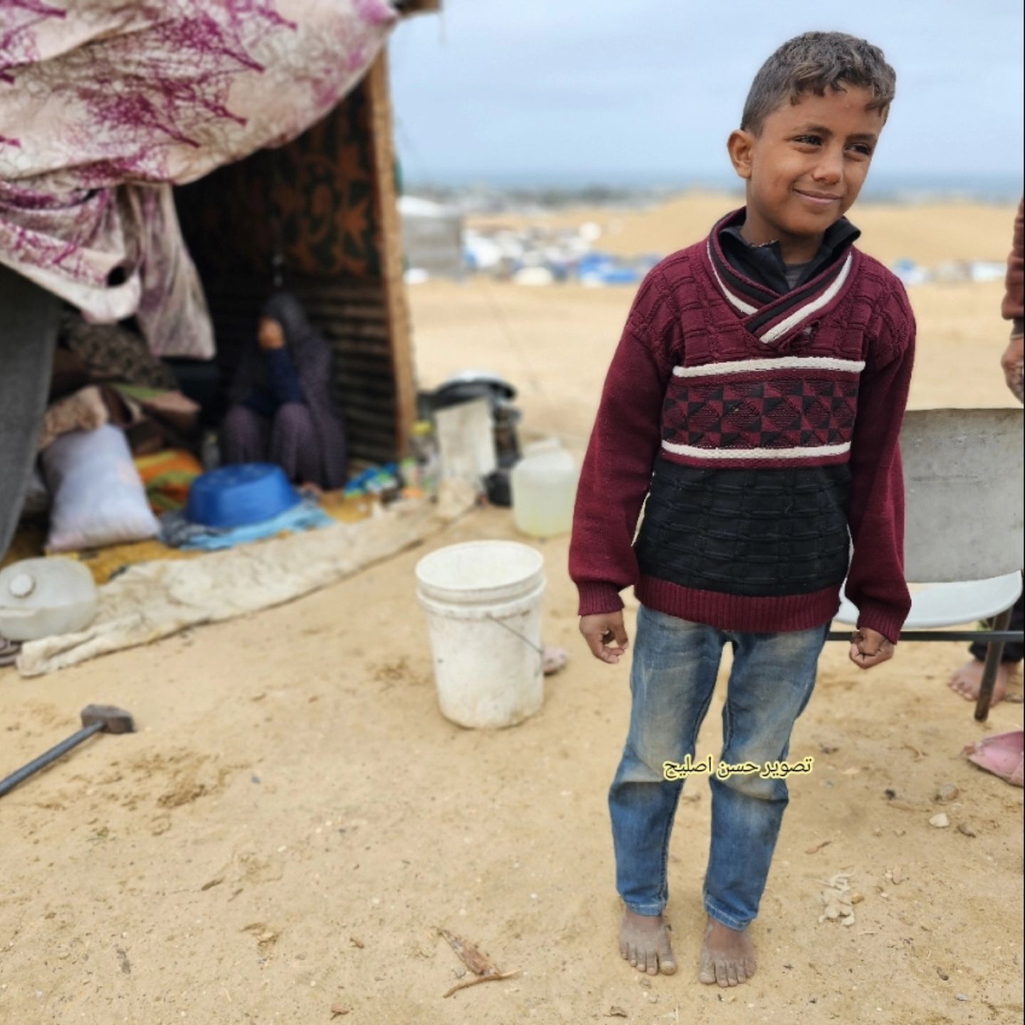 These three Palestinian children are heroes, struggling and walking long distances despite the winter cold to provide drinking water for their displaced families living in tattered tents, amidst the ongoing Israeli genocide against Gaza.