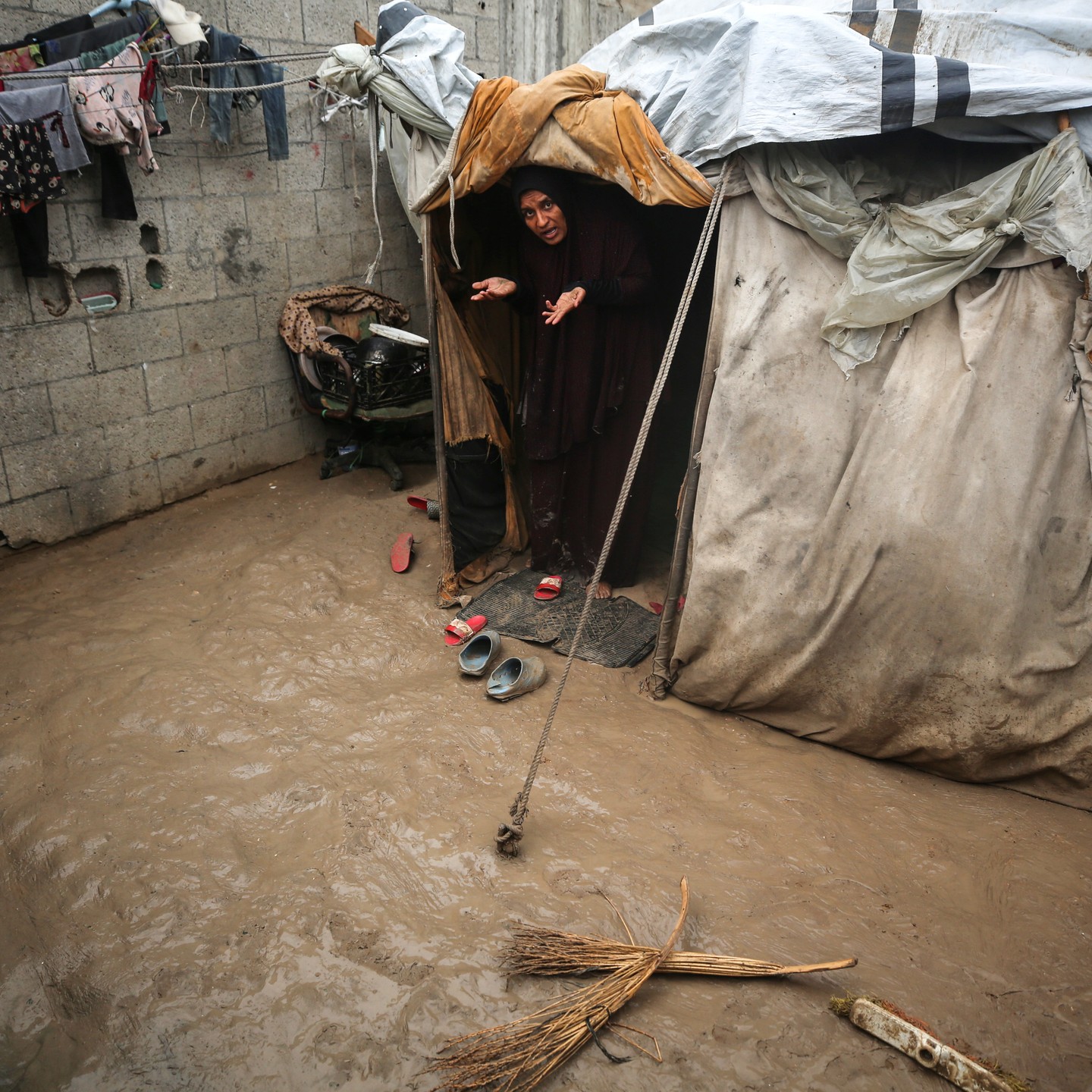 The suffering of the displaced people in the rainy weather in Gaza. By @anas_fteiha من معاناة النازحين في ظل الاجواء الماطرة في غزة