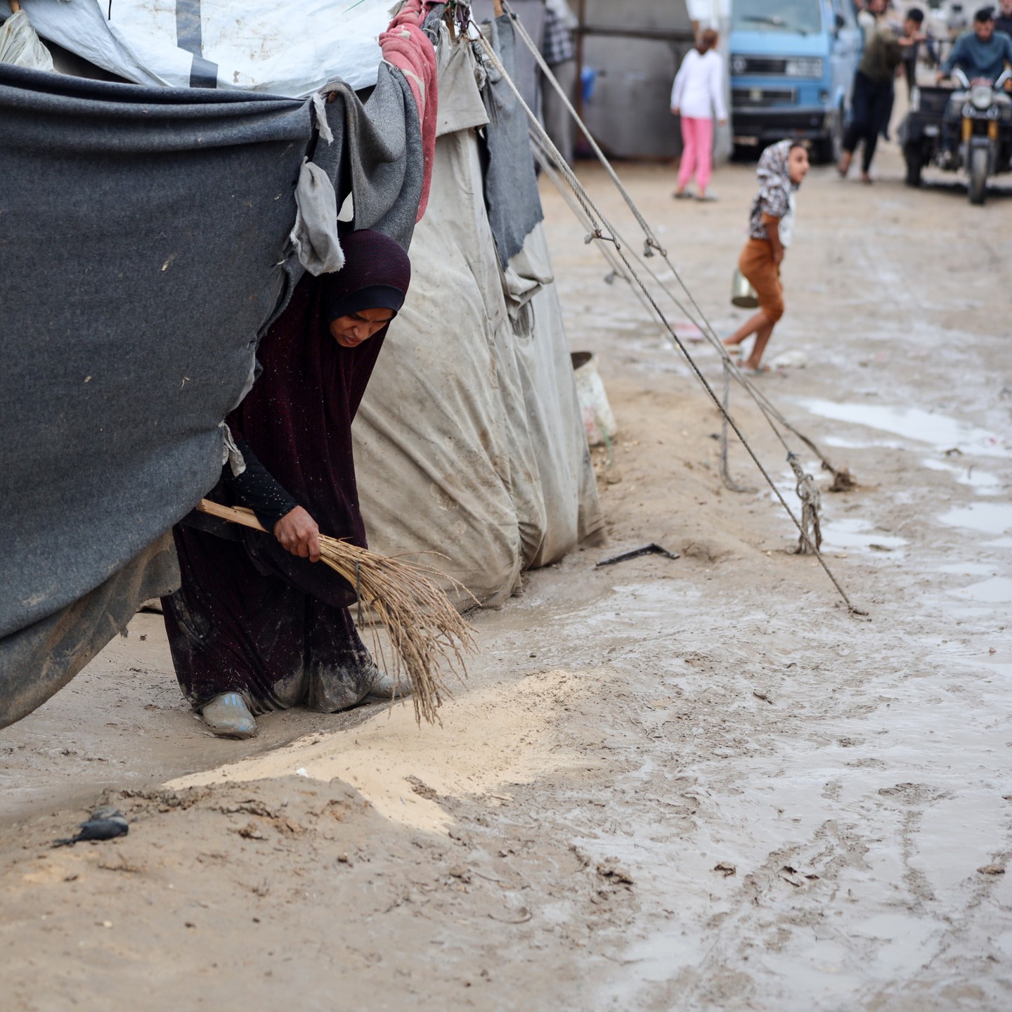 للمرة الثانية خلال حرب الإبادة الإسرائيلية، يدخل فصل الشتاء على خيام النازحين في قطاع غزة. For the second time during the Israeli war of annihilation, winter enters the tents of the displaced in the Gaza Strip.
