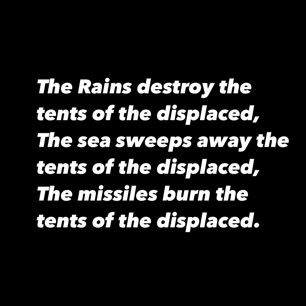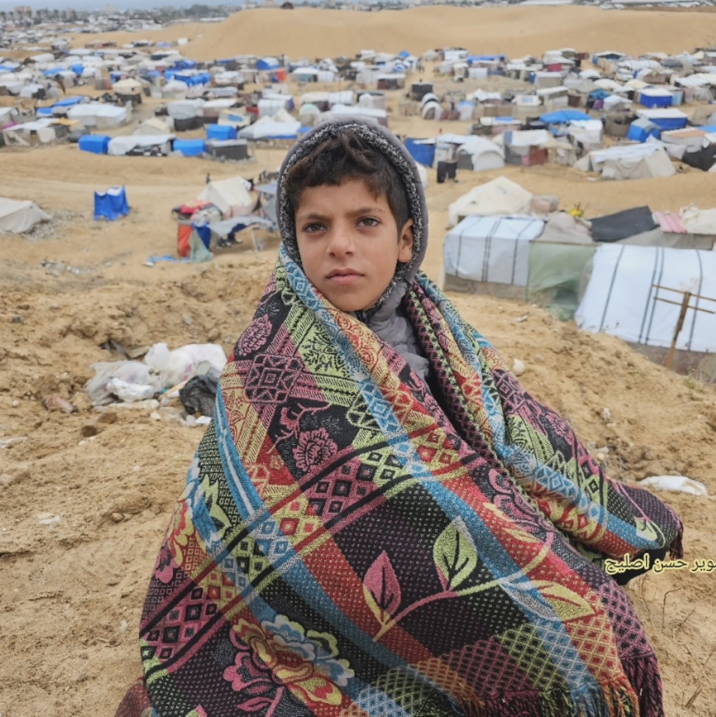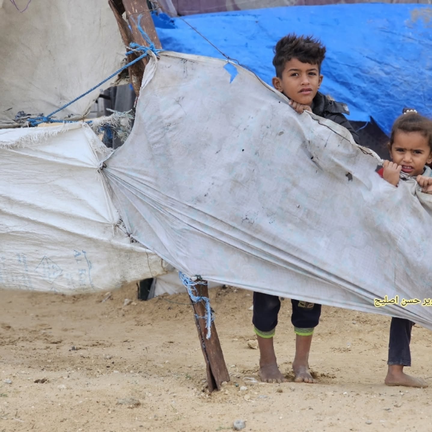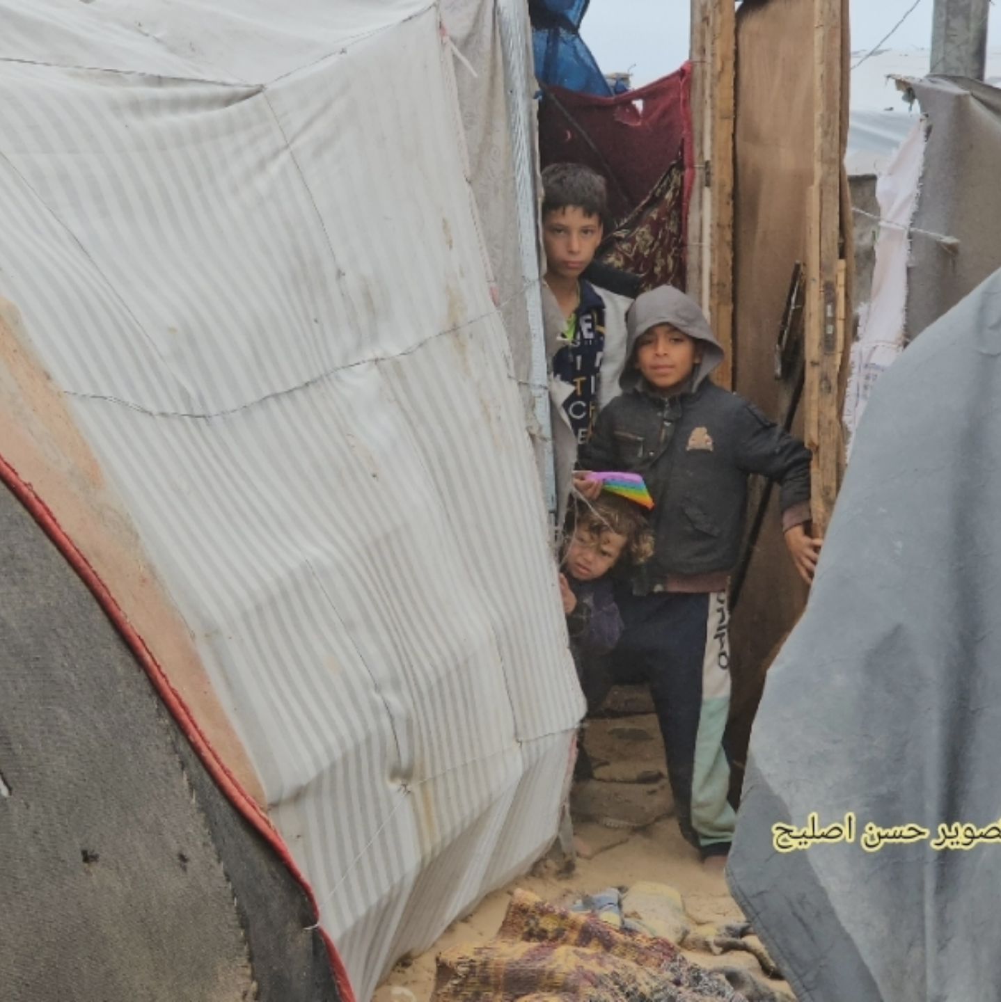 حبسهم الألم و الجوع و المطر في الشهر الرابع عشر من الحرب و الإبادة و التجويع إذن حالهم لا يخفى على من ينظر إليهم في هذا الوقت الصعب المرير