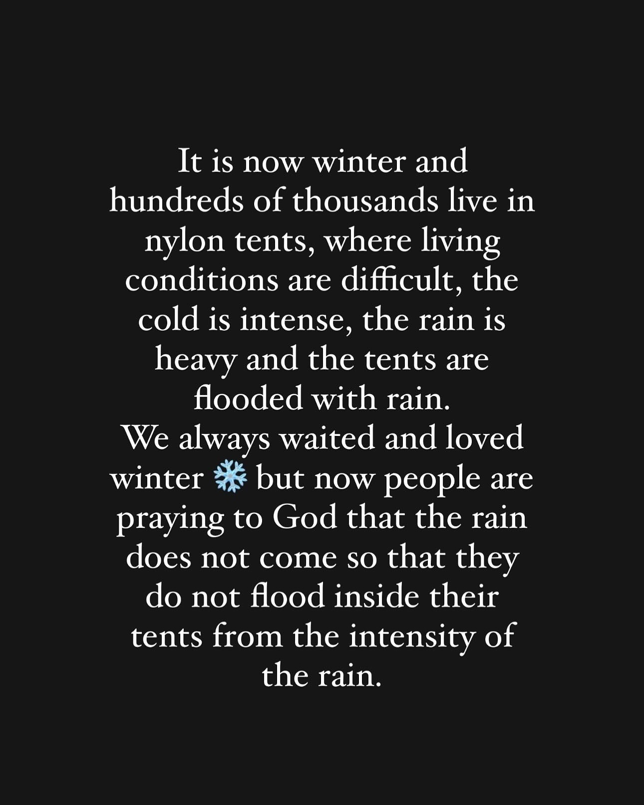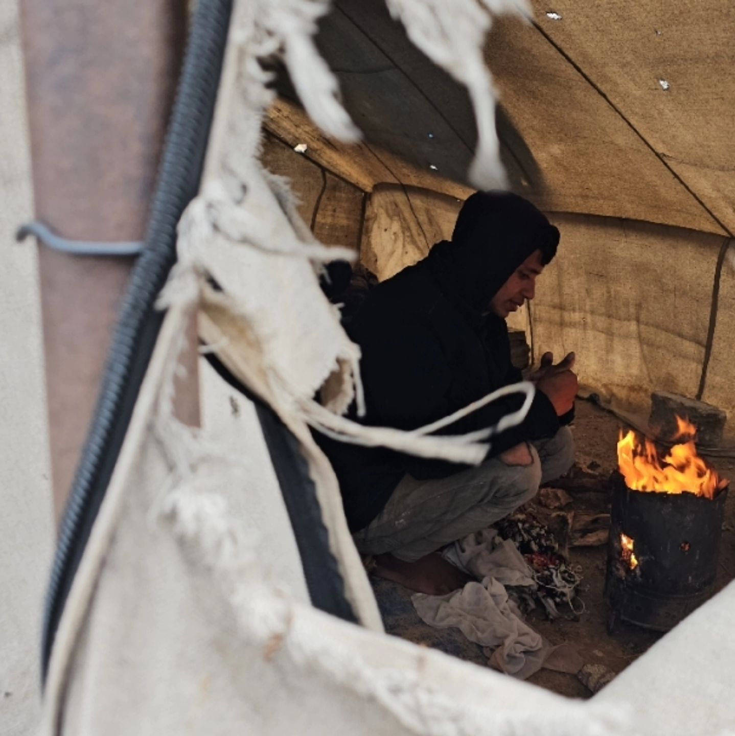لا نوم لنا من شدة البرد داخل الخيام... البرد ينهش الأجساد والليل بلا نهاية. يا رب كن عونًا وسندًا لنا