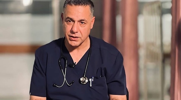 إصابتي شرف لي.. مدير مستشفى كمال عدوان د. حسام أبو صفية، بعد إصابته في قصف طائرة مسيرة للاحتلال على المستشفى