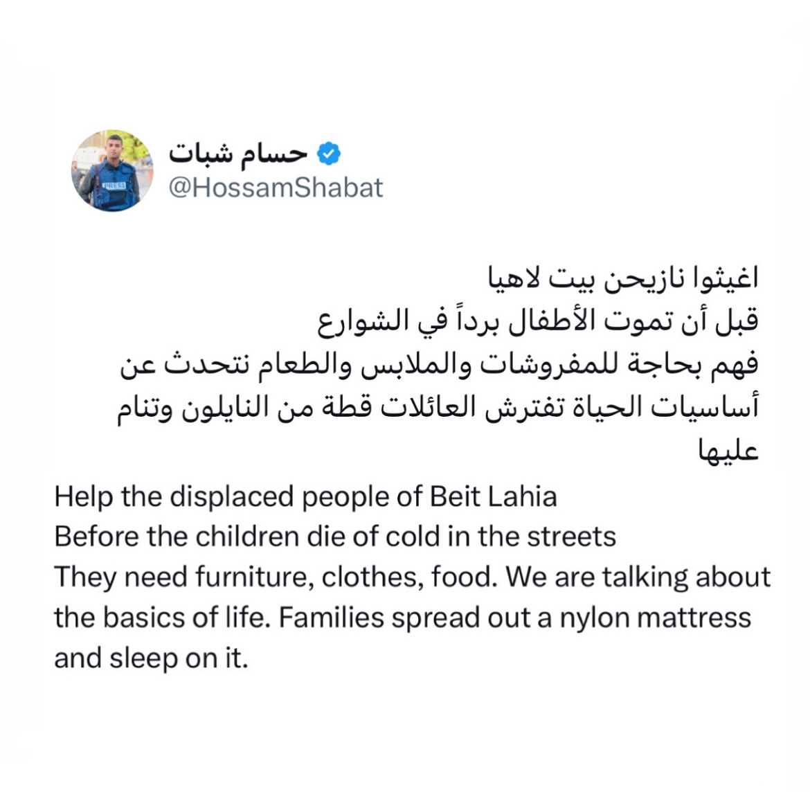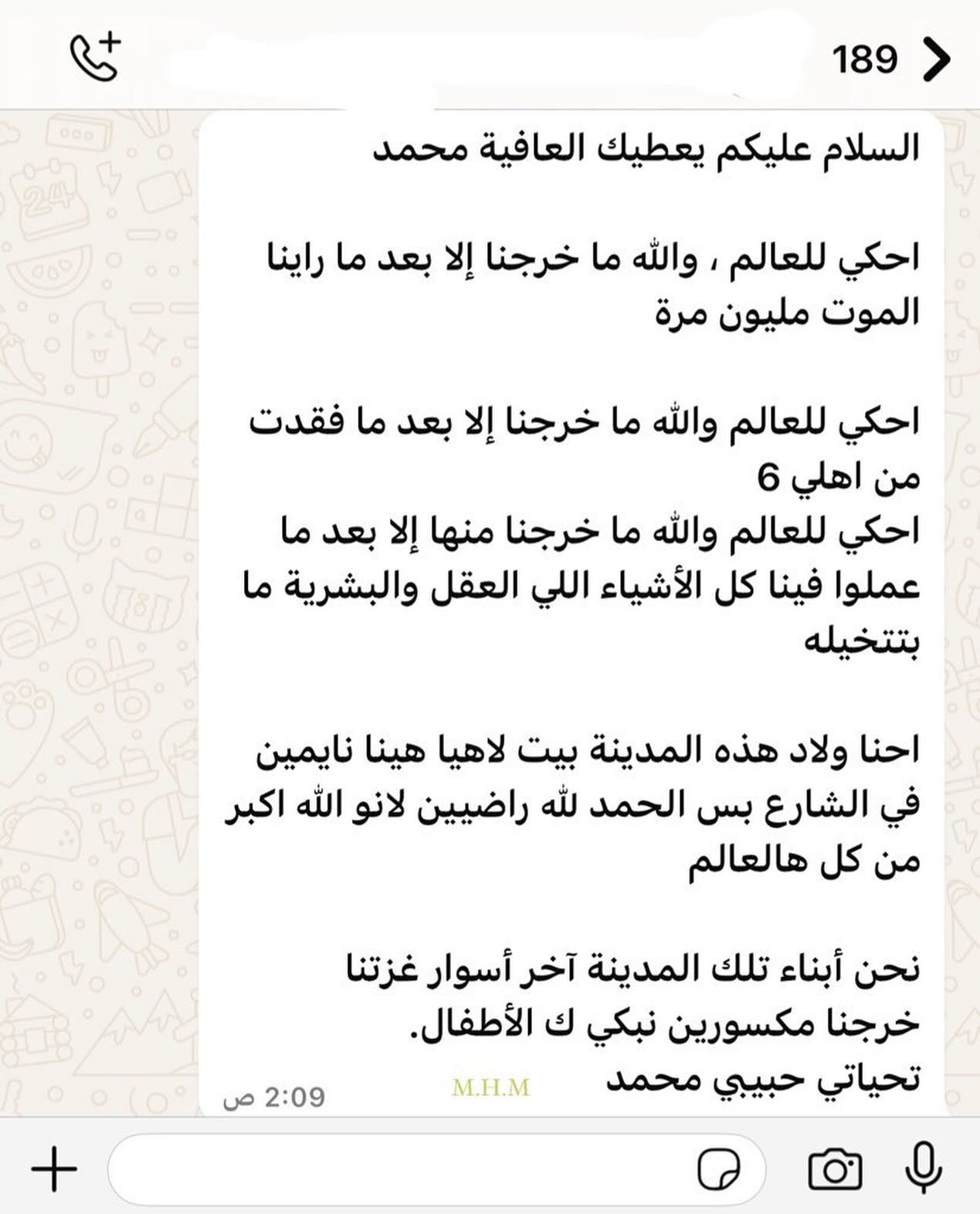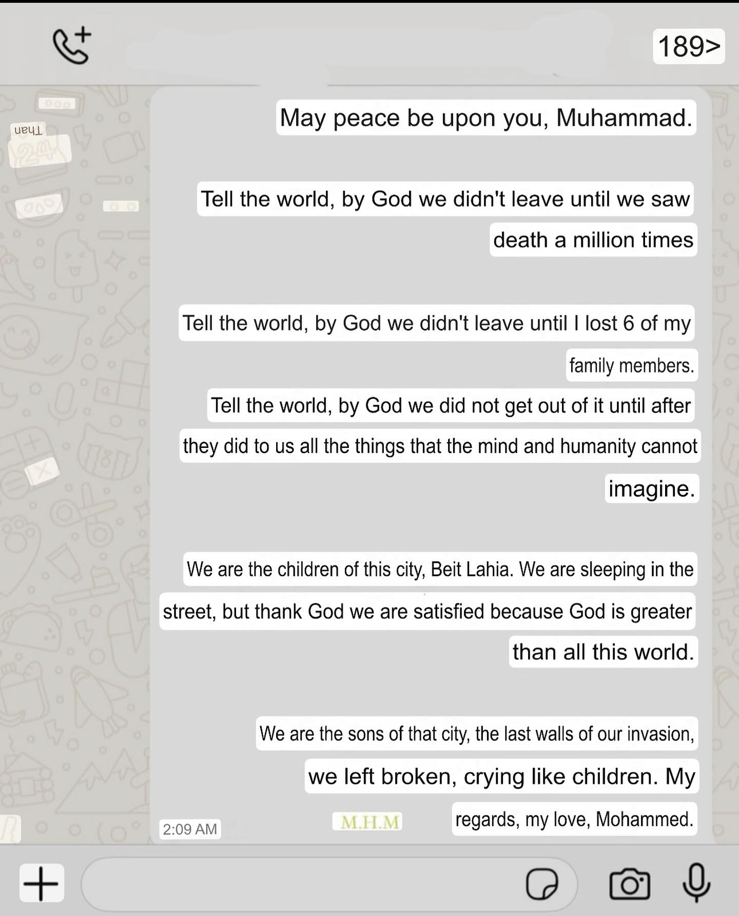 One of the young men, after leaving Beit Lahia, north of Gaza, sends me this message and tells me to make the world read it 👇