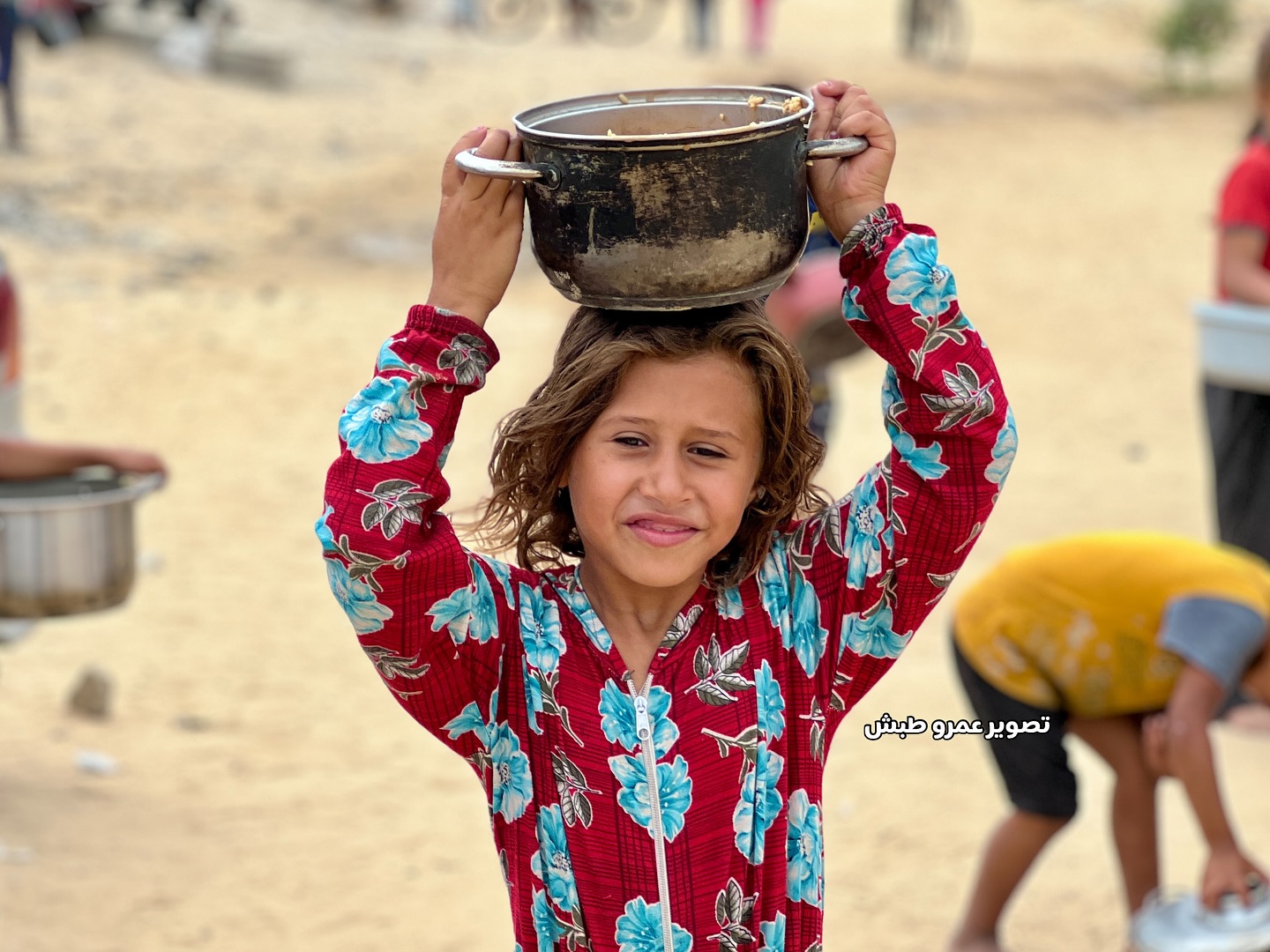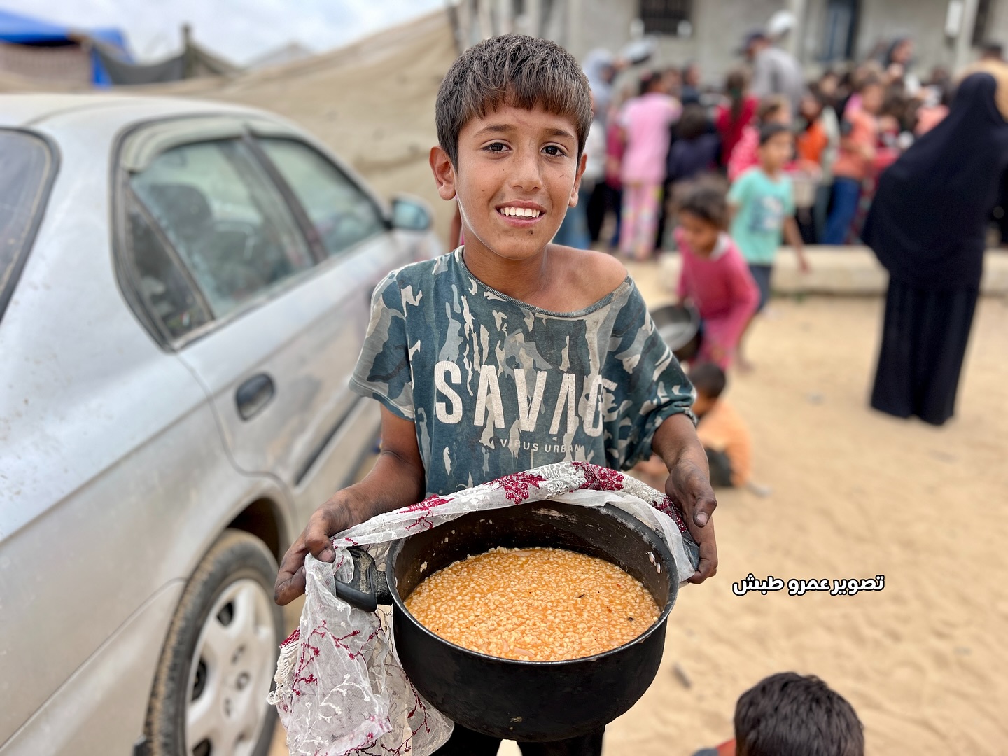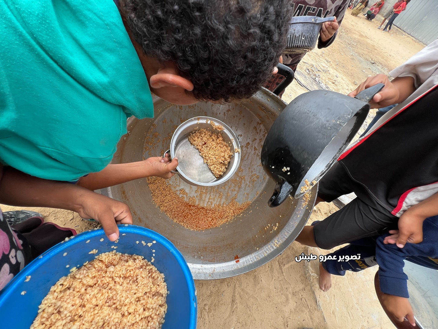 فرحة الأطفال بعد حصولهم على القليل من الطعام بعد انتظار دام أكثر من 5 ساعات Children’s joy after getting a little food after waiting for more than 5 hours