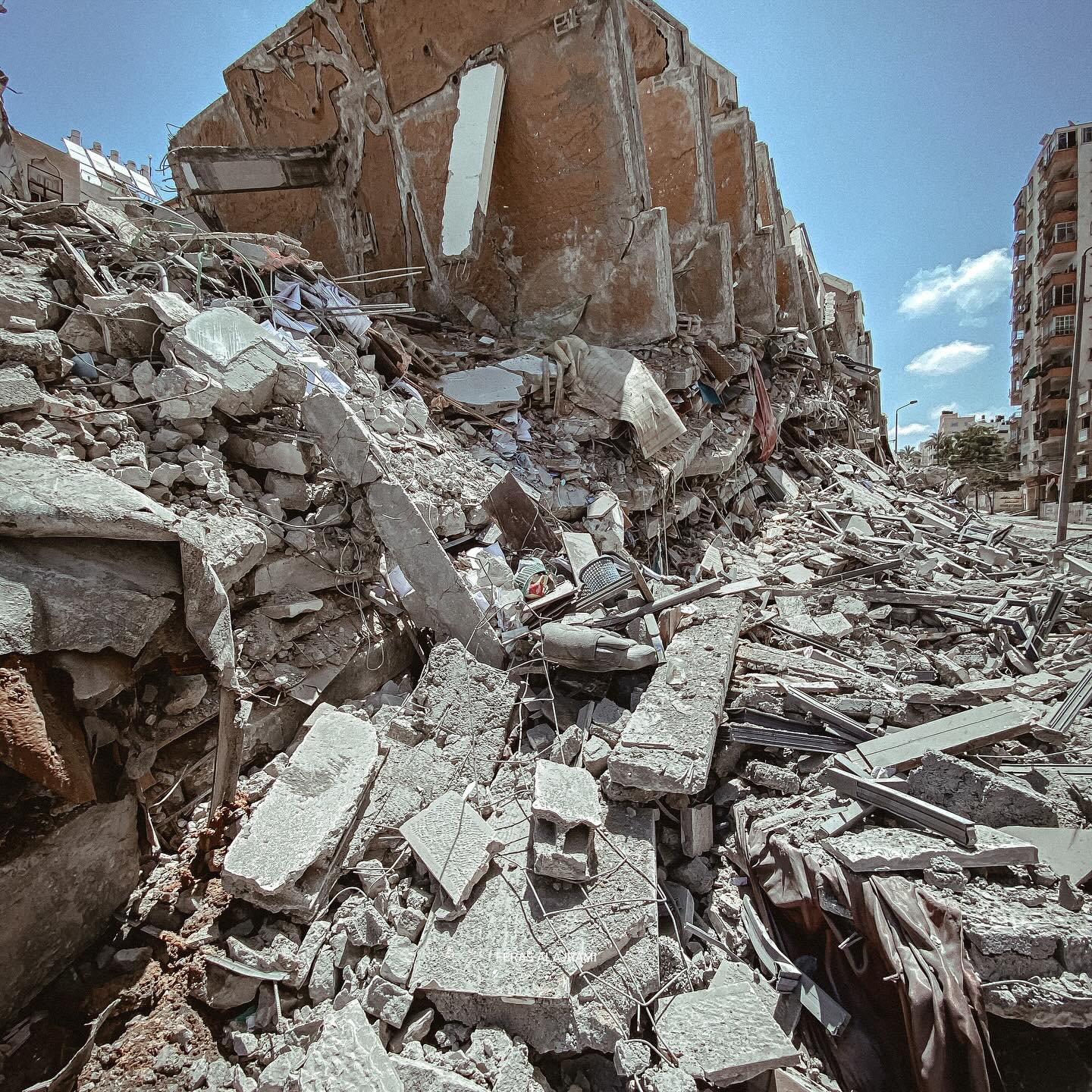 جيش الإحتلال يتعمد نسف أكبر كم من المباني في المناطق التي يجتاحها بهدف تدمير كل البنية التحتية ، وعدم إبقاء أي مأوى للسكان The occupation army deliberately blows up the largest amount of buildings in the areas it sweeps with the aim of destroying all infrastructure, and not keeping any shelter for the population