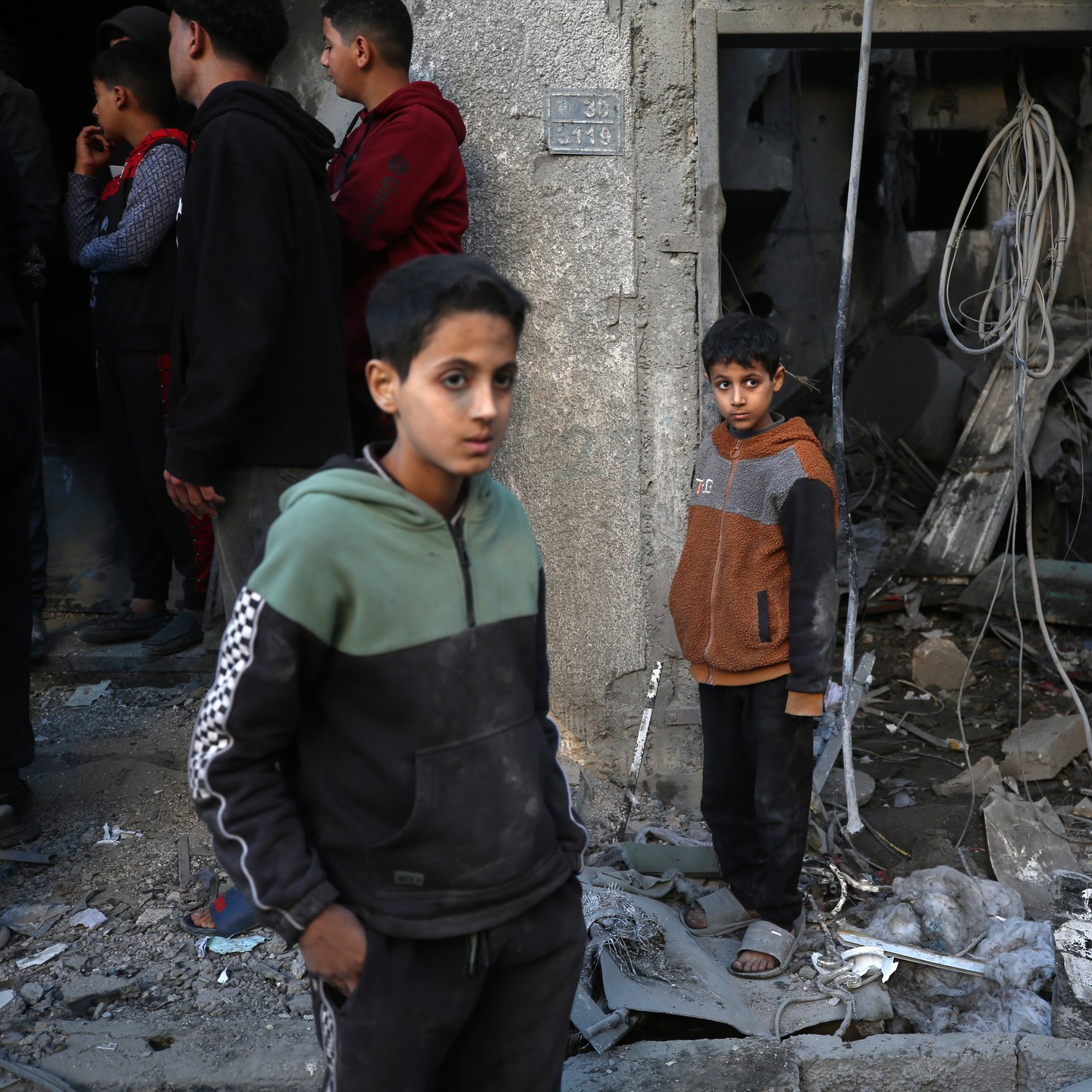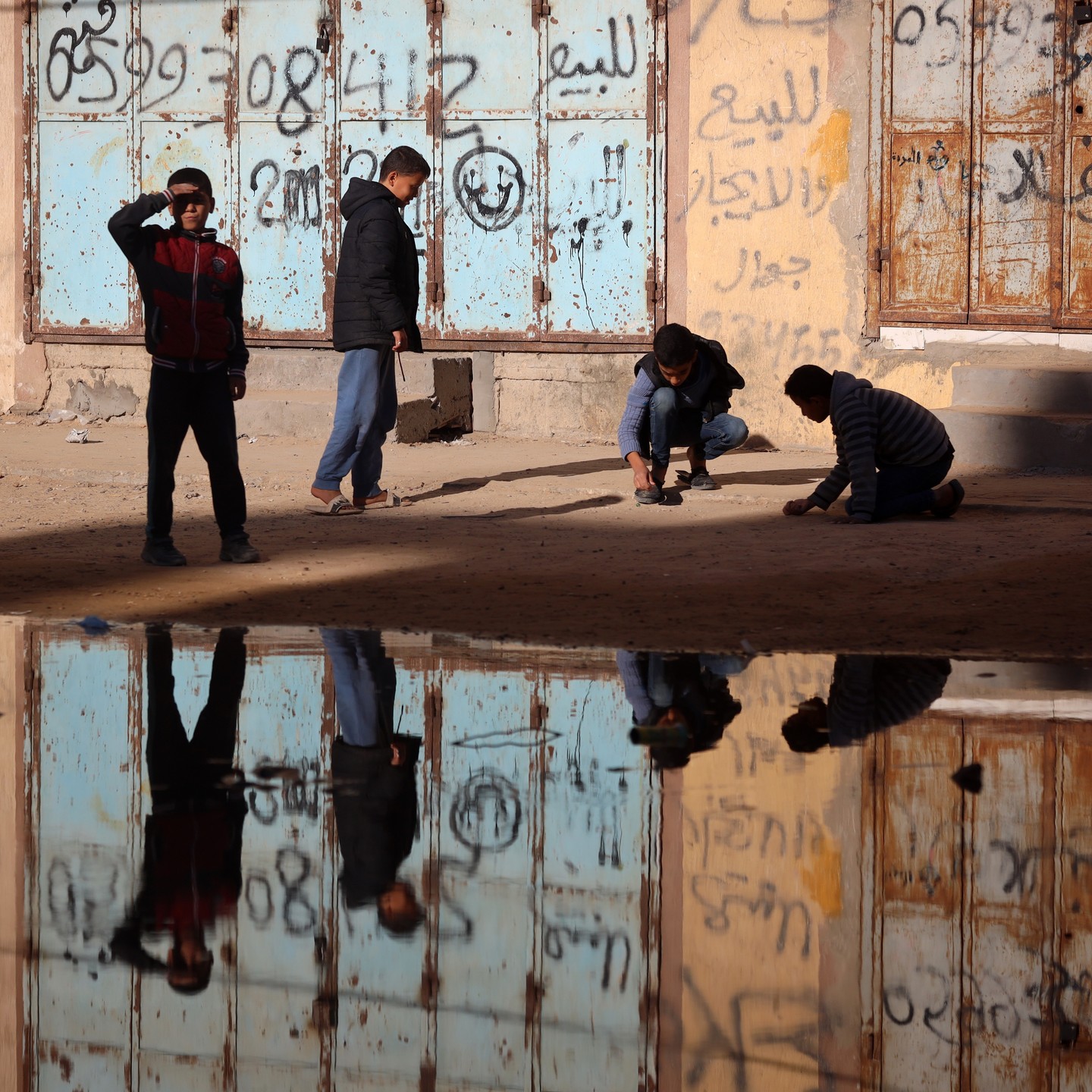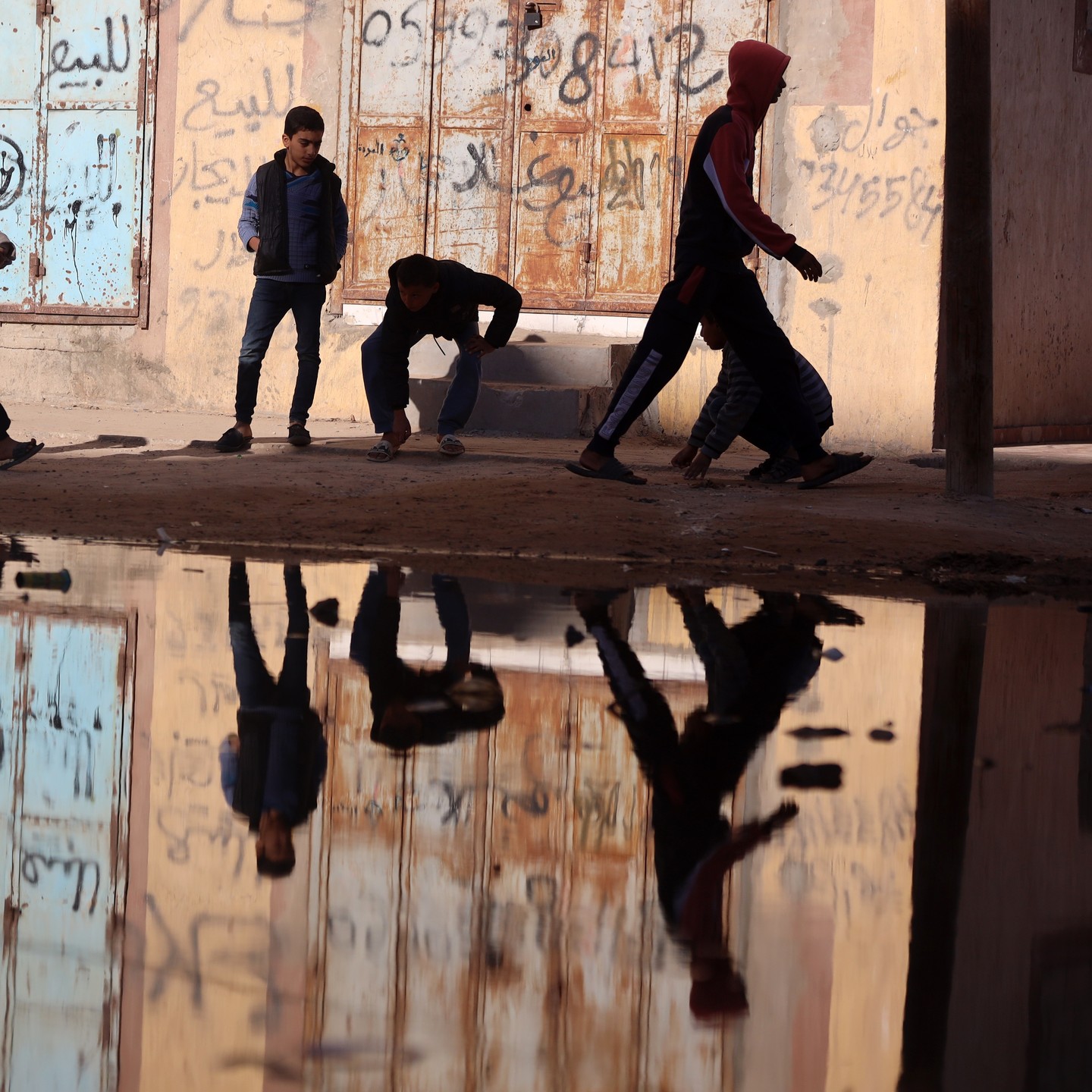Palestinian children play at the Nuseirat refugee camp in the central Gaza Strip, December 13, 2024. photo by majdi fathi